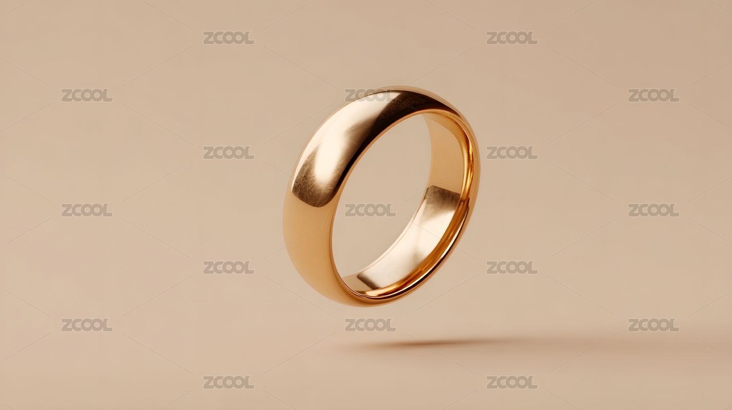 金色光滑戒指悬浮于米色背景