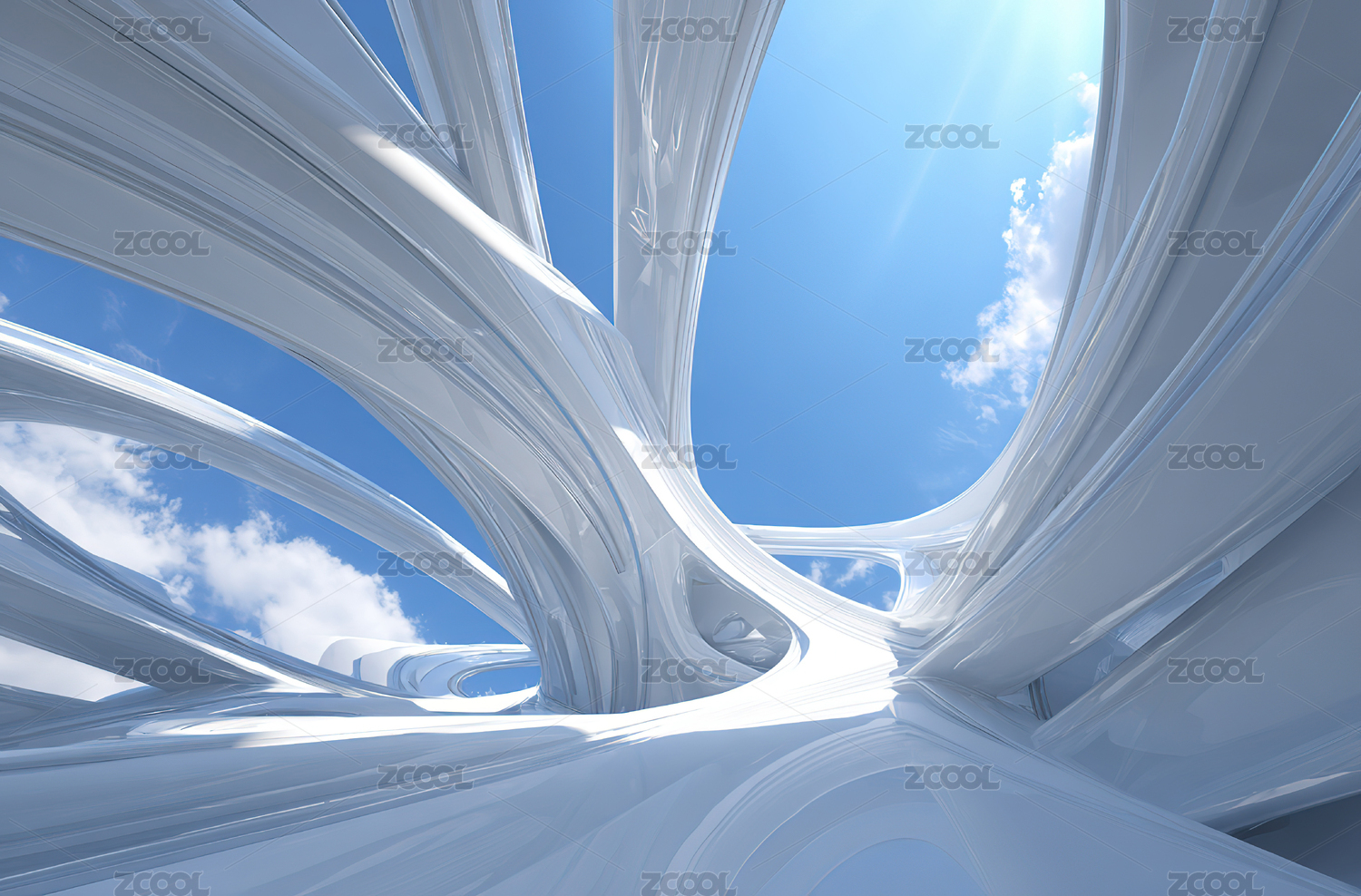 白色浅蓝梦幻曲线空间抽象未来艺术