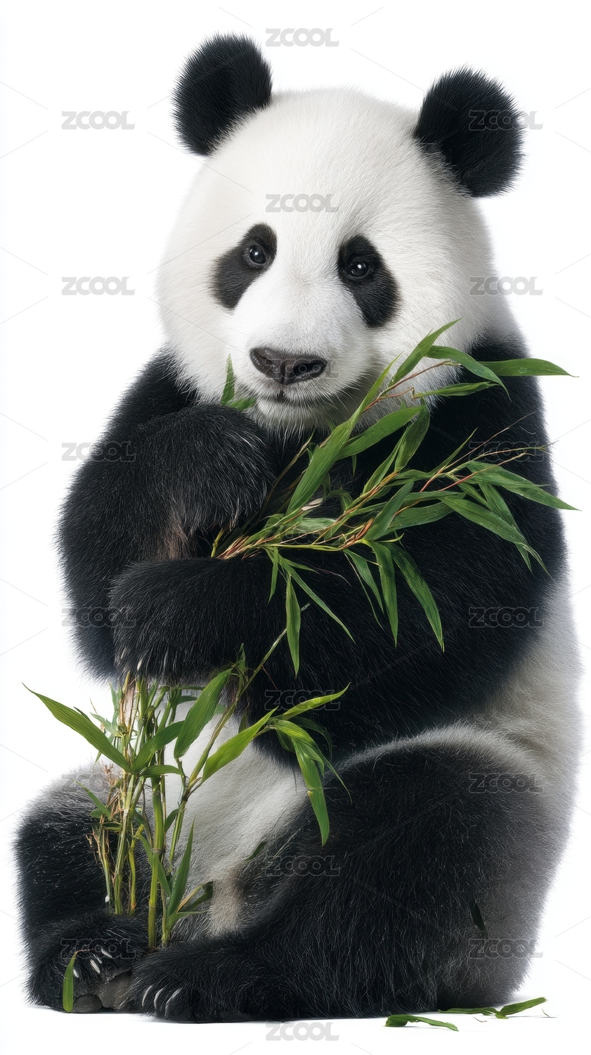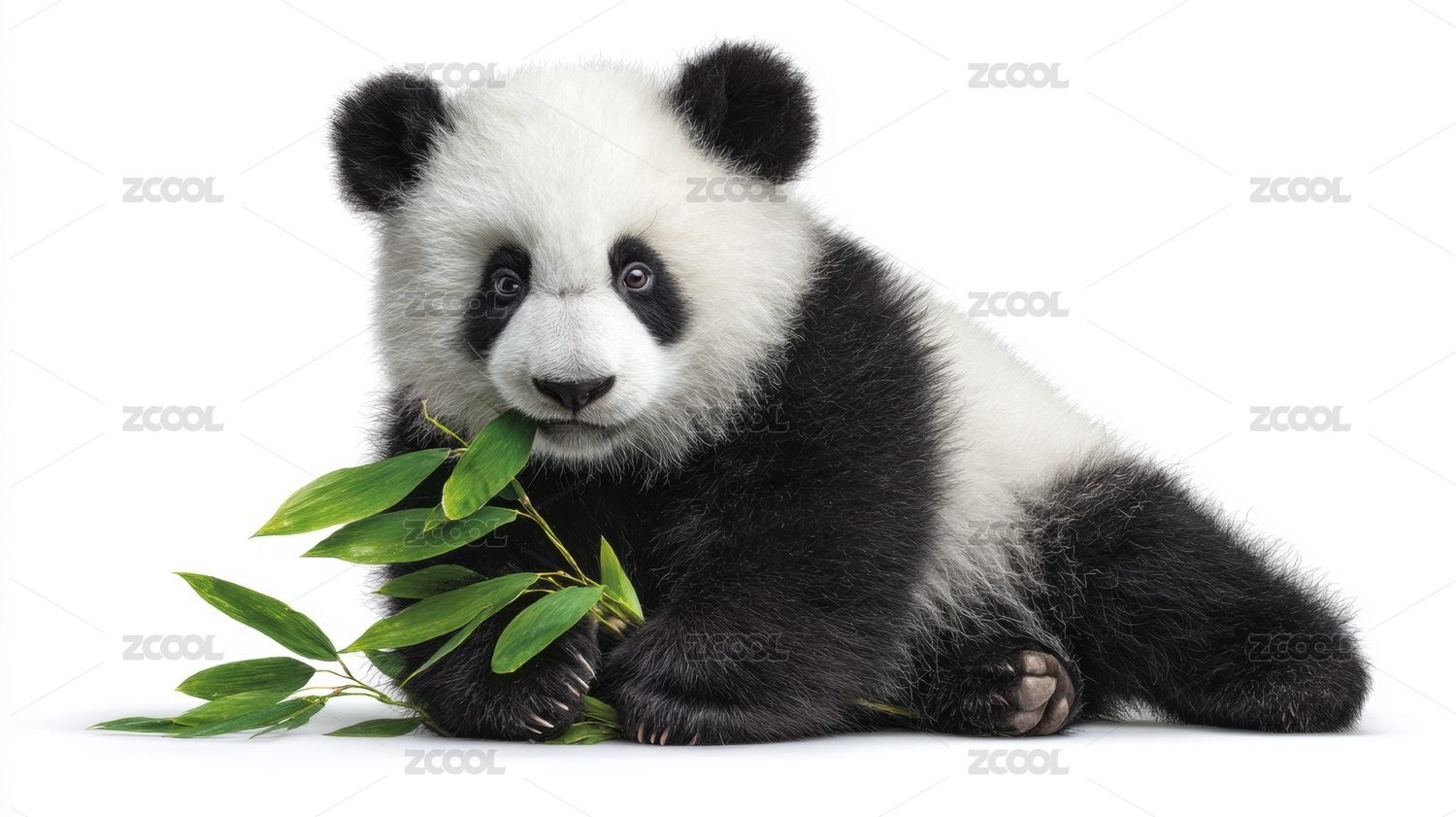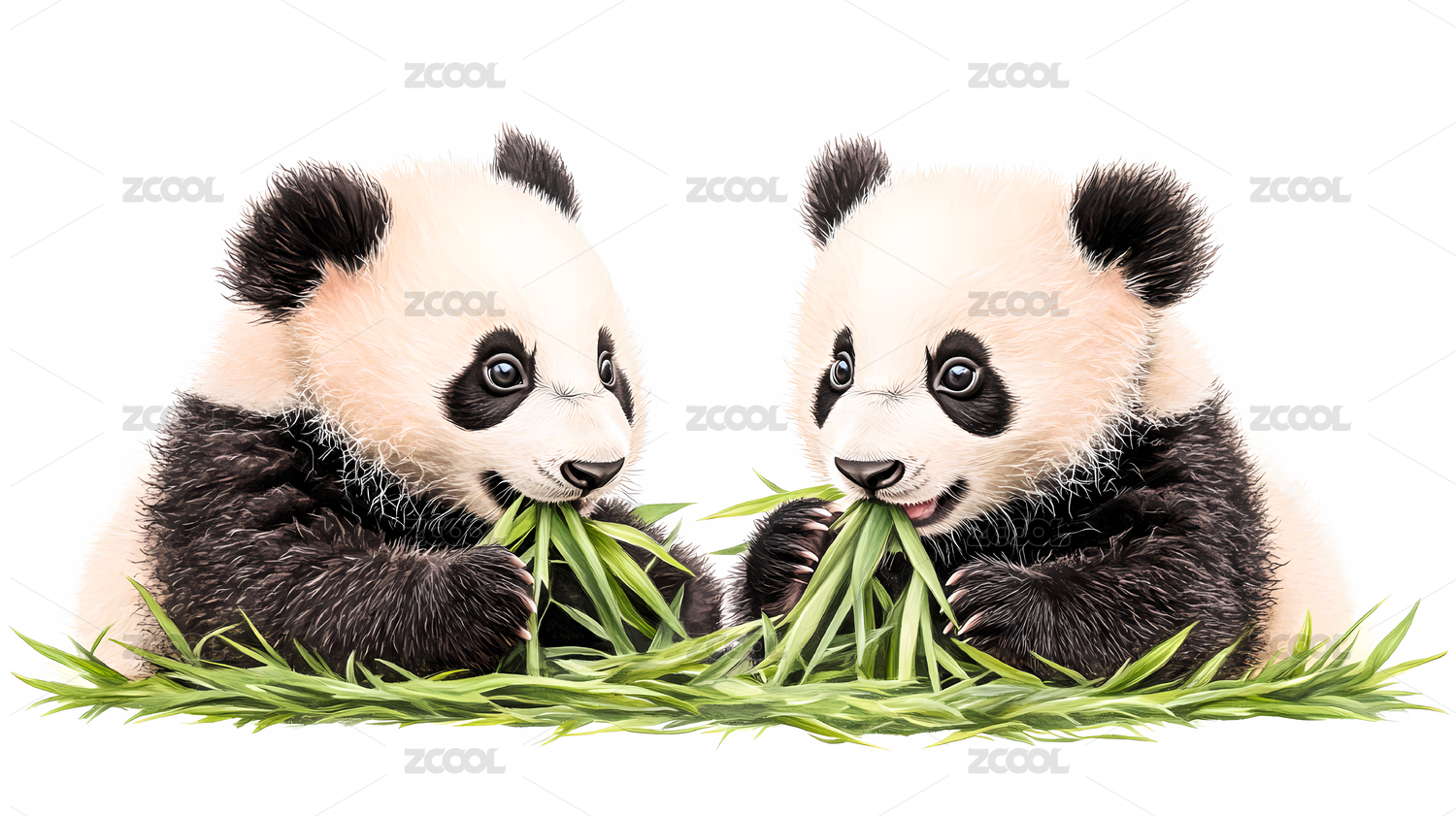 水墨插画风中国国宝吉祥物熊猫拿着竹子微笑