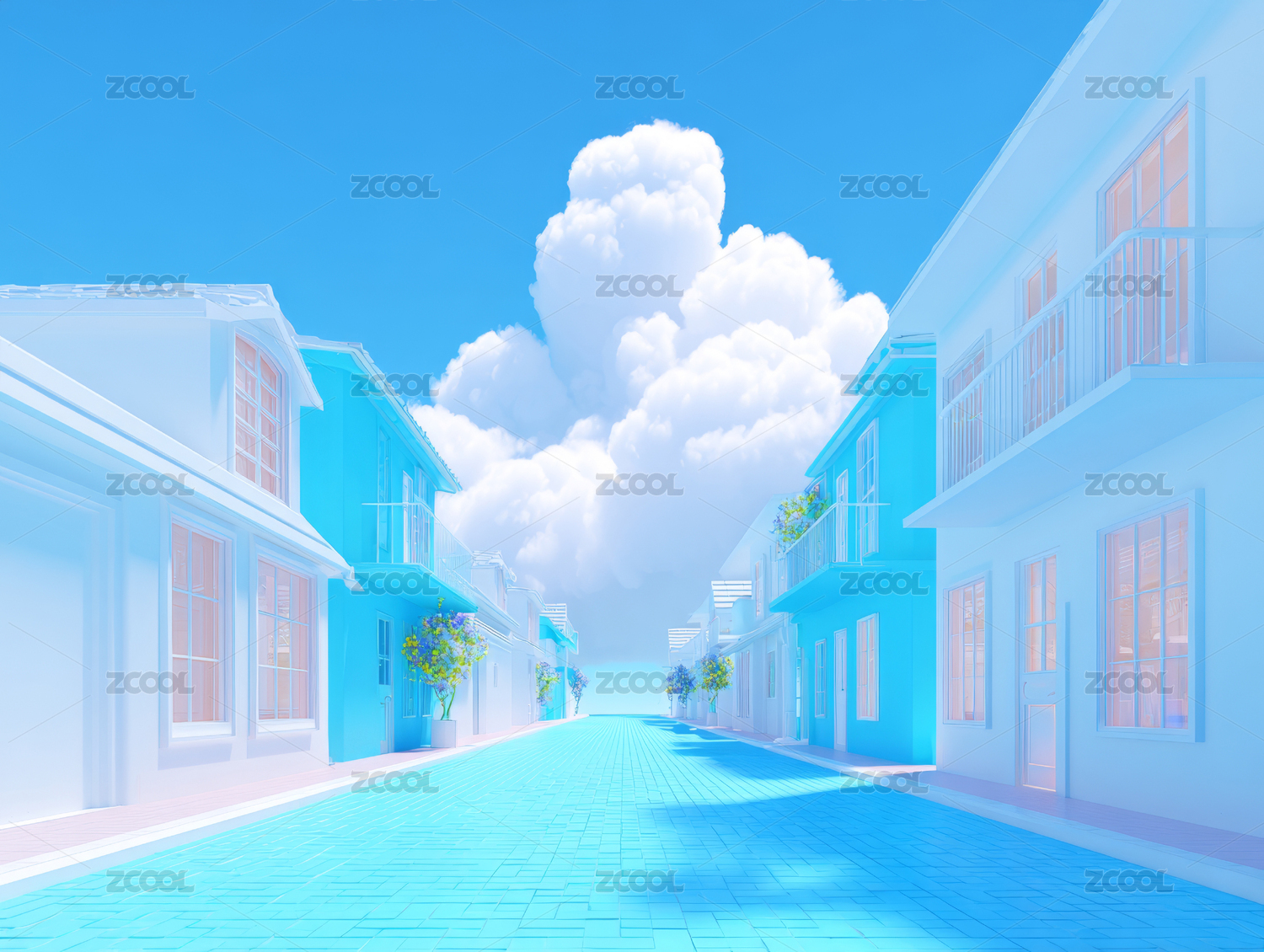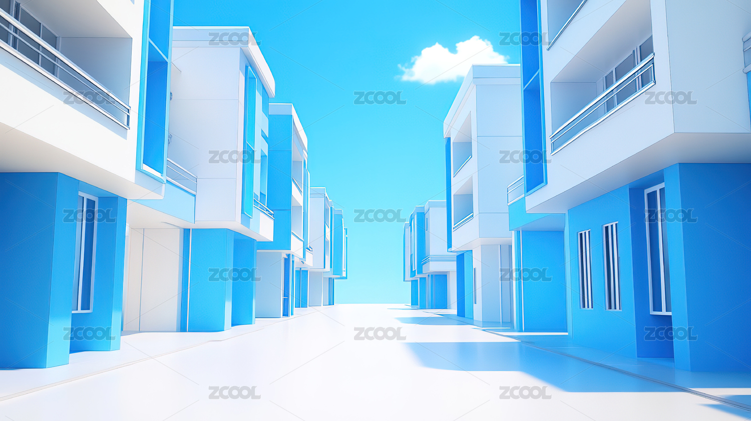 城市,街景,现代,道路,建筑,蓝色,多层,立方体,路灯,细节