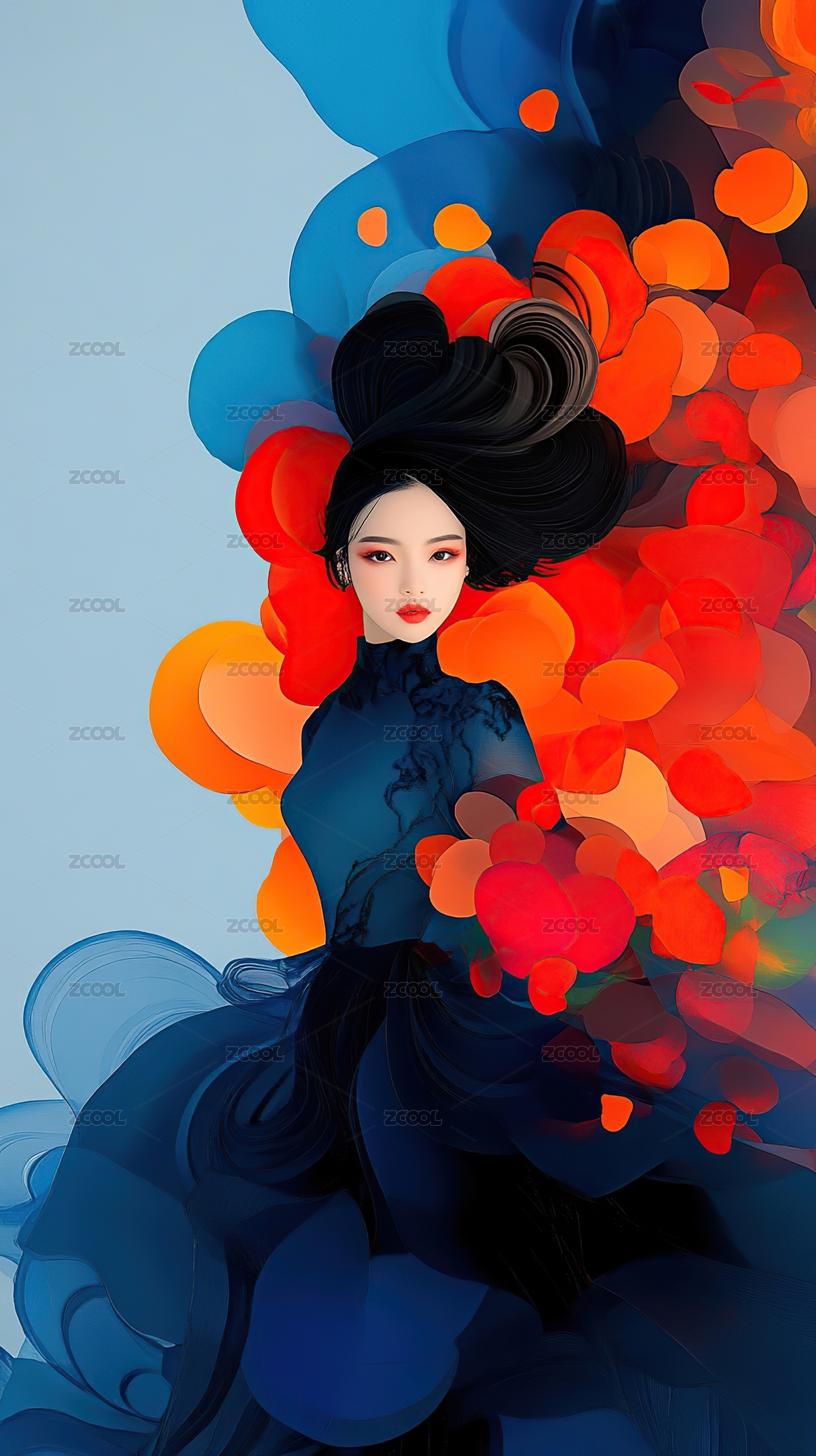 水墨美女插画