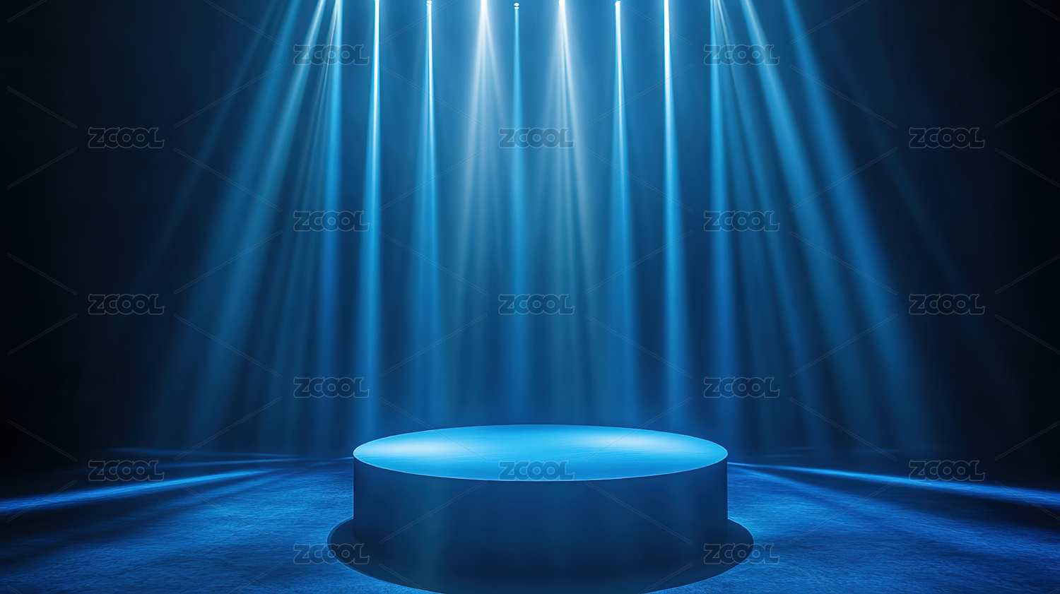 蓝色,背景,舞台,展台,聚光灯,光束,产品,圆柱
