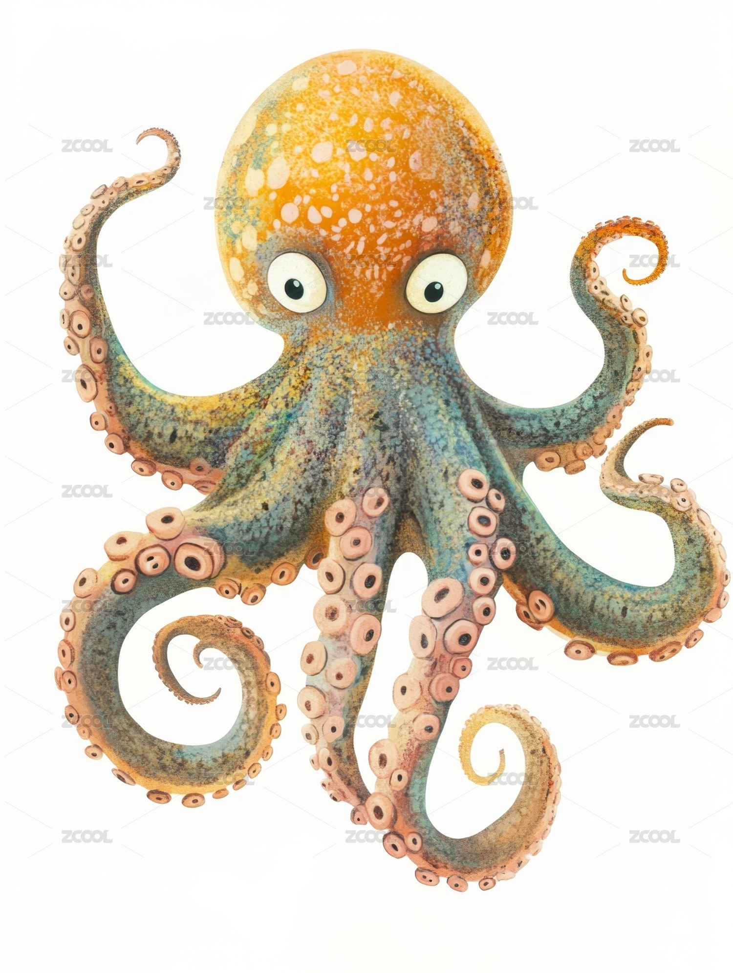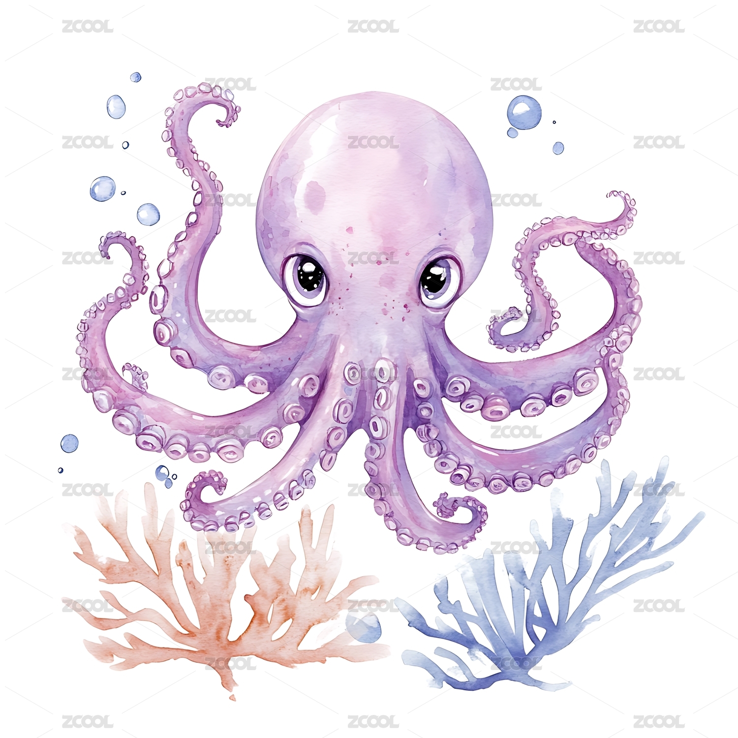 卡通水彩插画水中的章鱼