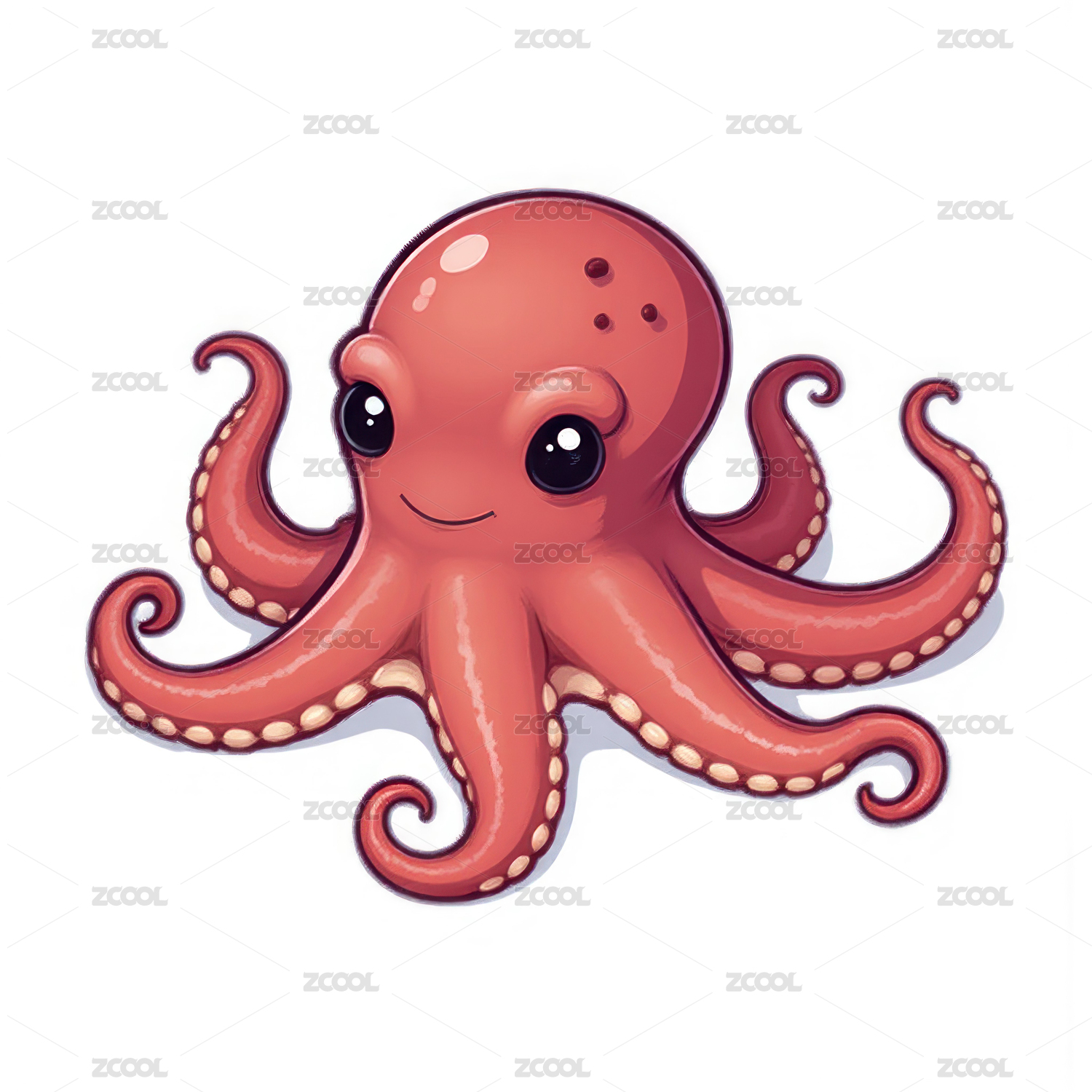 可爱粉色小章鱼微笑卡通图