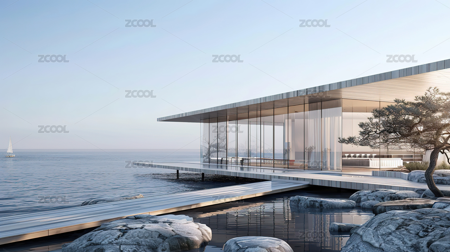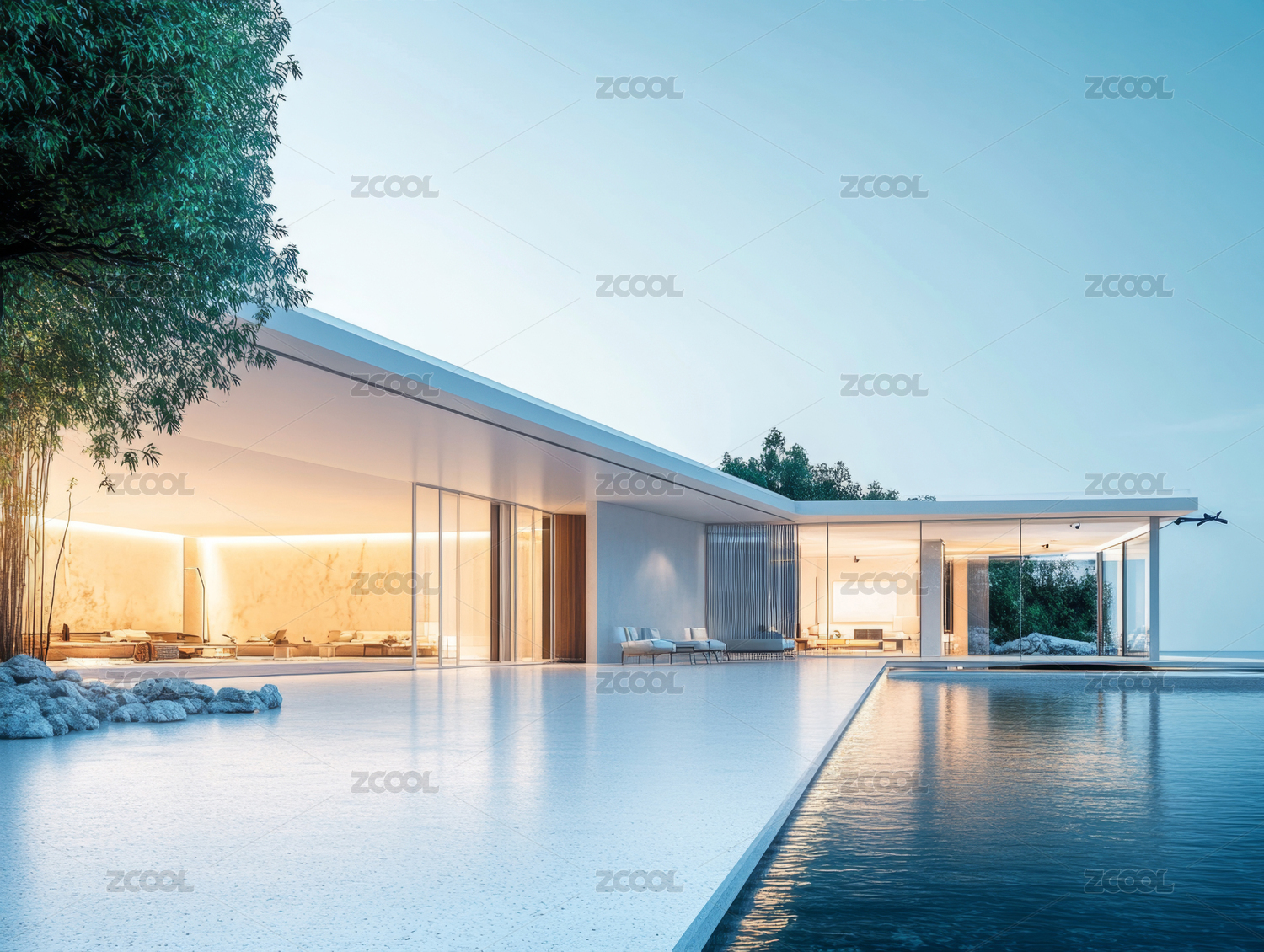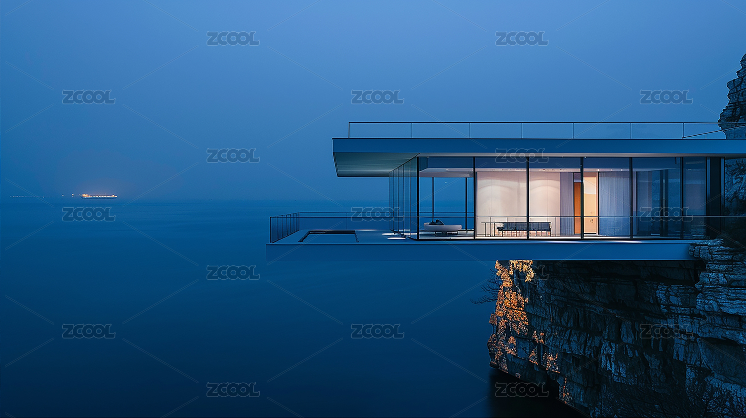 现代,建筑,悬崖,豪华,别墅,玻璃,幕墙,室内,照明,自然
