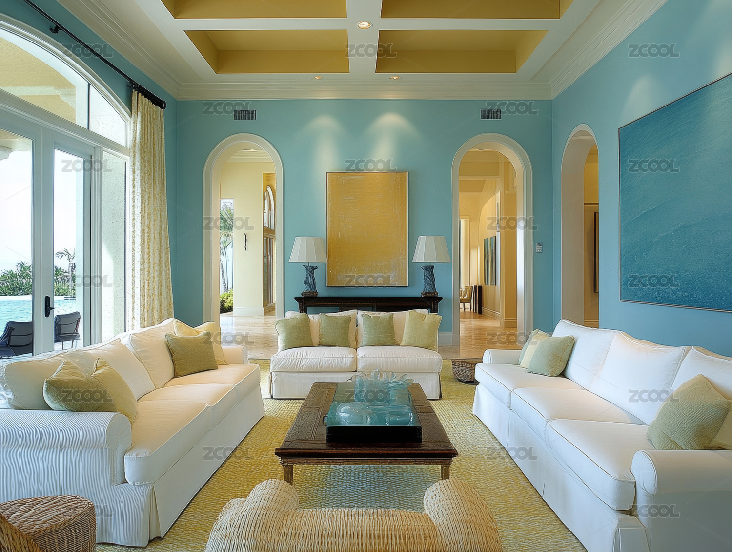 客厅,沙发,拱门,窗户,植物,装饰画,地毯,灯,家具,室内