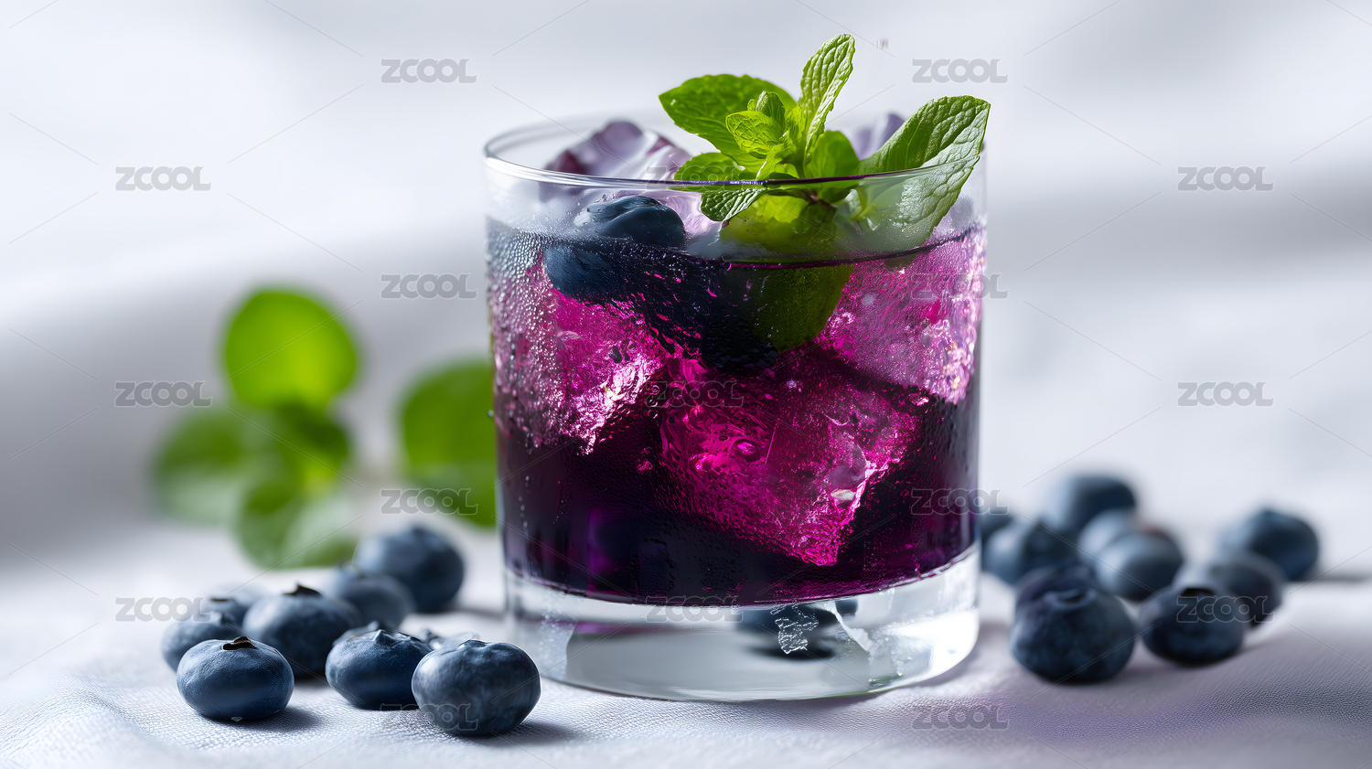 冰镇蓝莓饮品配薄荷叶