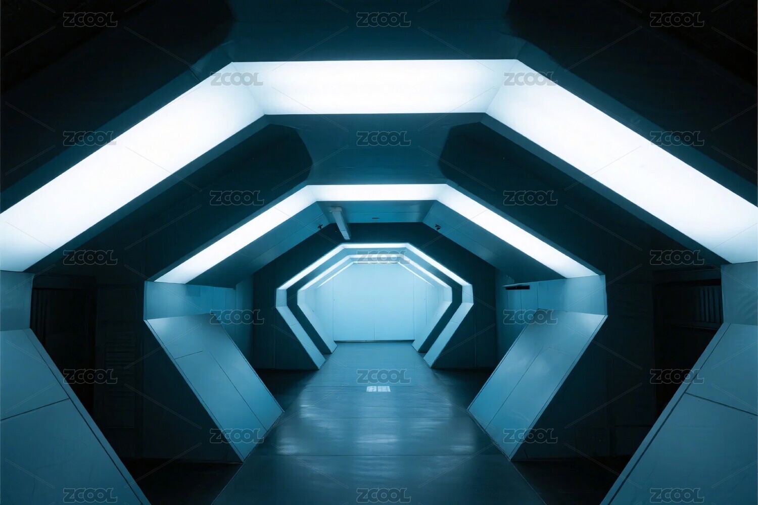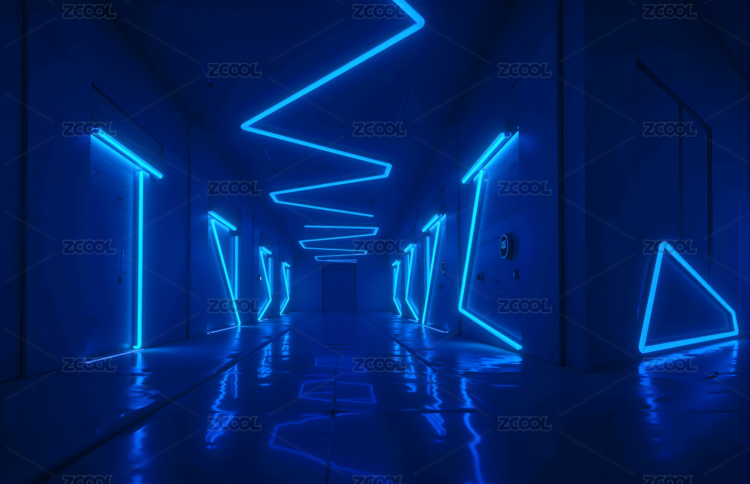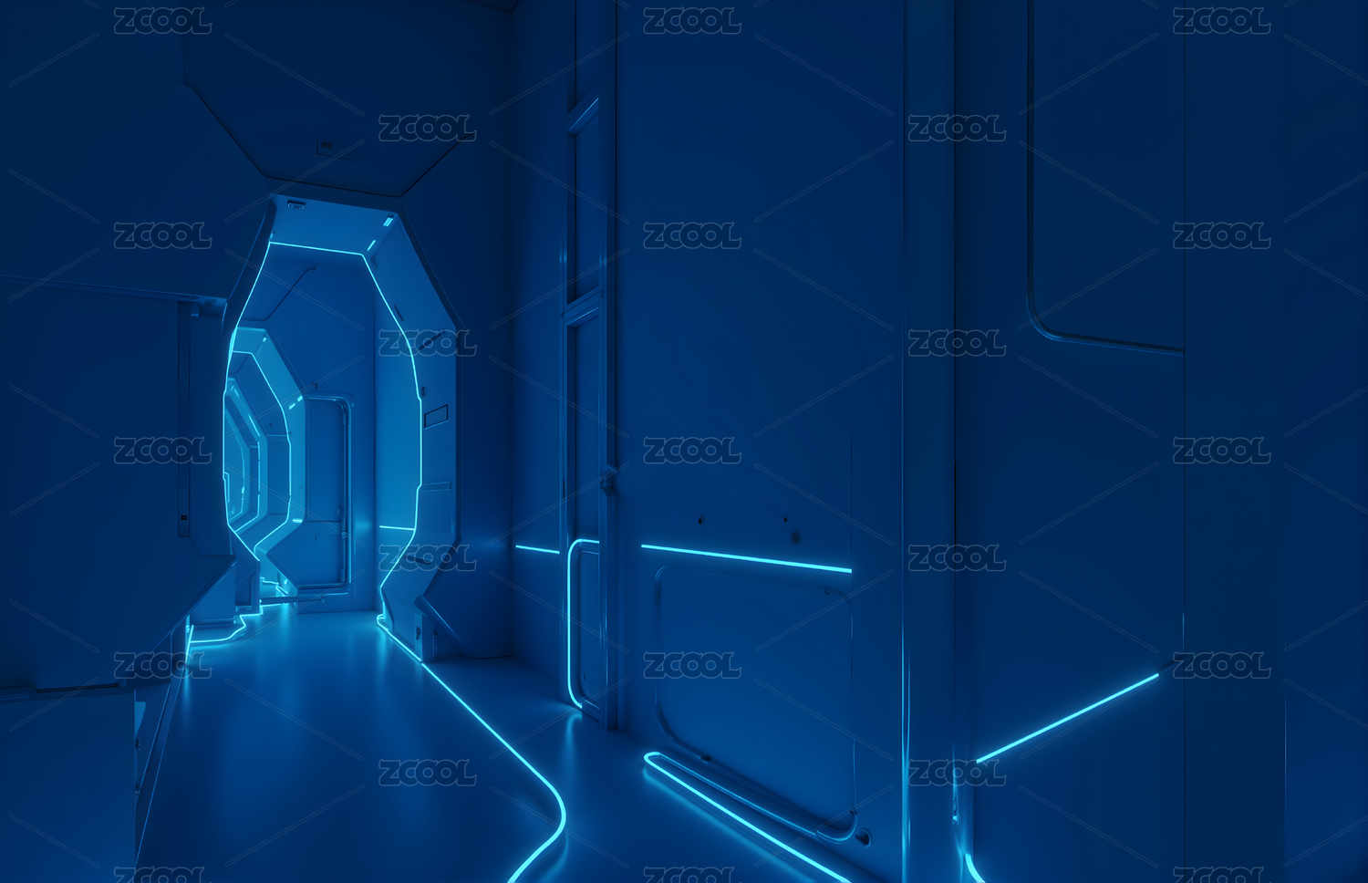 未来科技走廊蓝色灯光设计