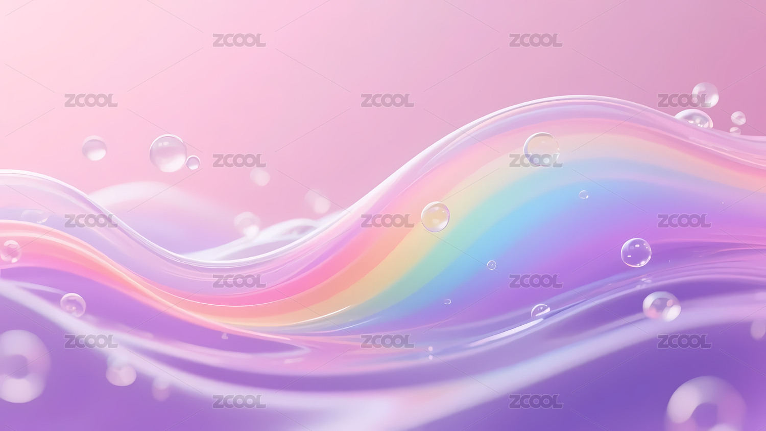 彩虹波浪线粉紫背景气泡