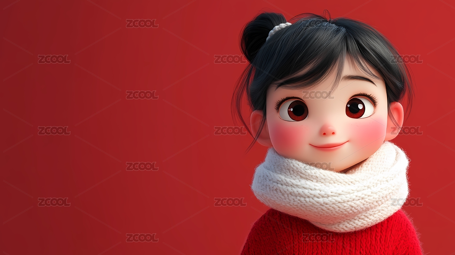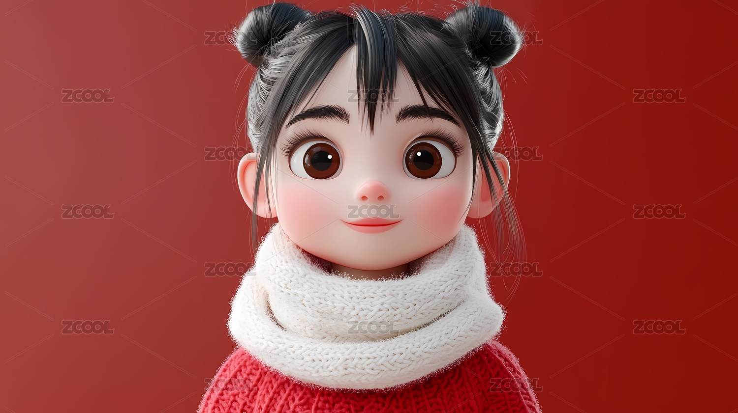 戴近视眼镜的小女孩儿童纯色背景3D卡通头