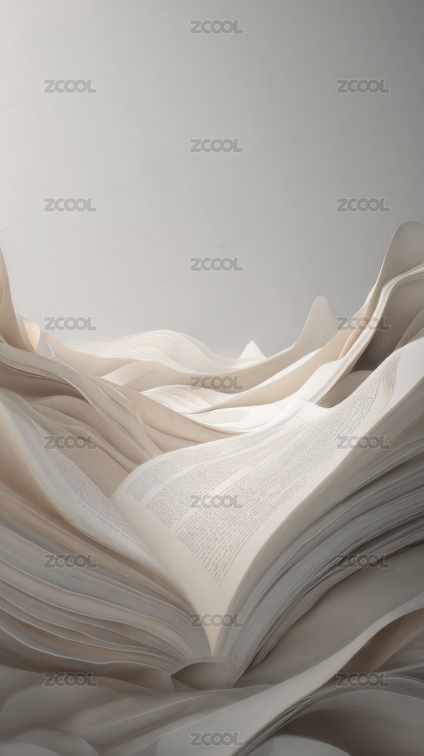 纸张翻滚卷曲柔美光影视觉效果艺术