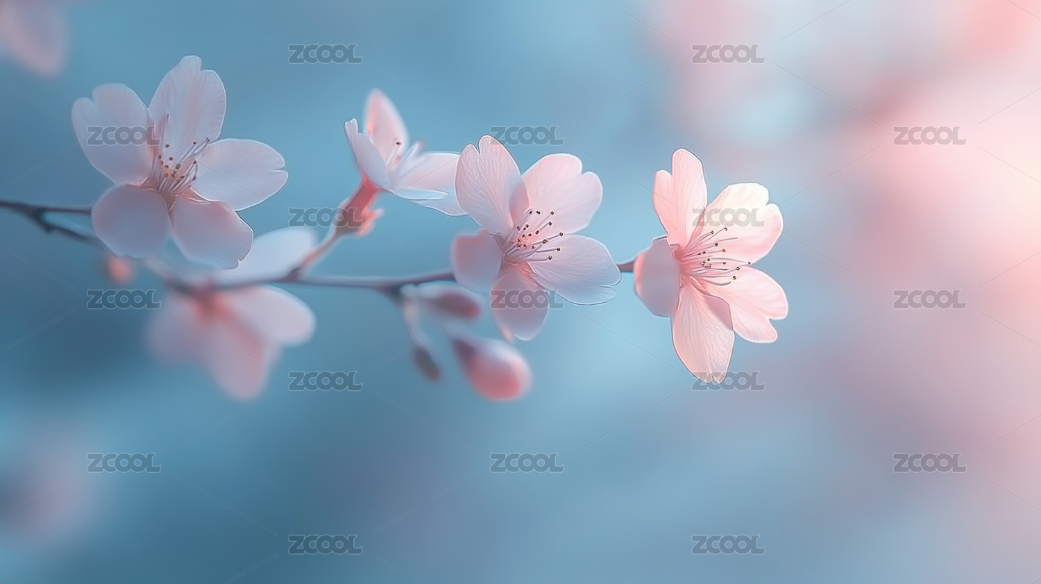 盛开樱花与浅蓝背景