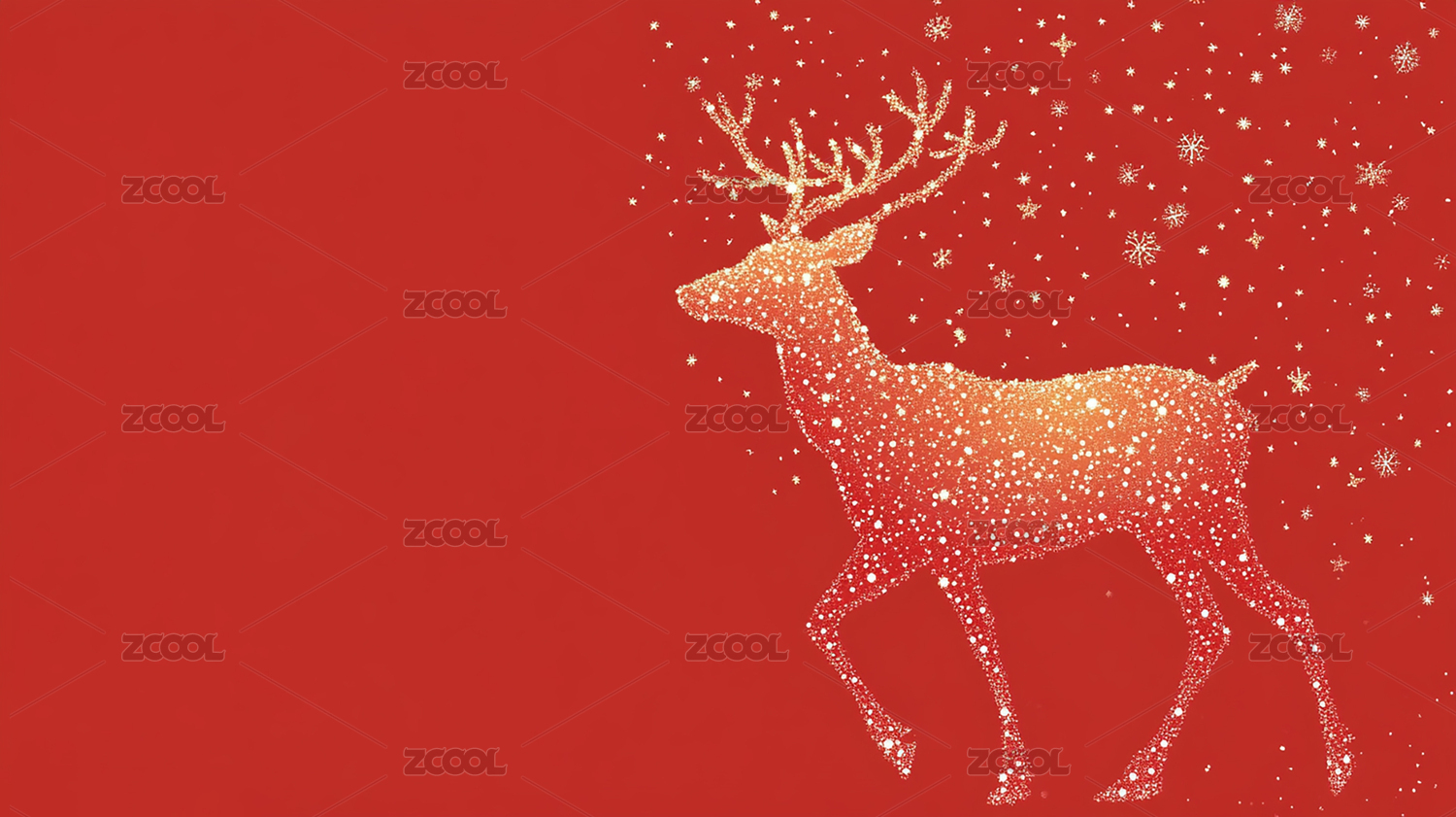 鹿与雪花在红色背景下的节日氛围