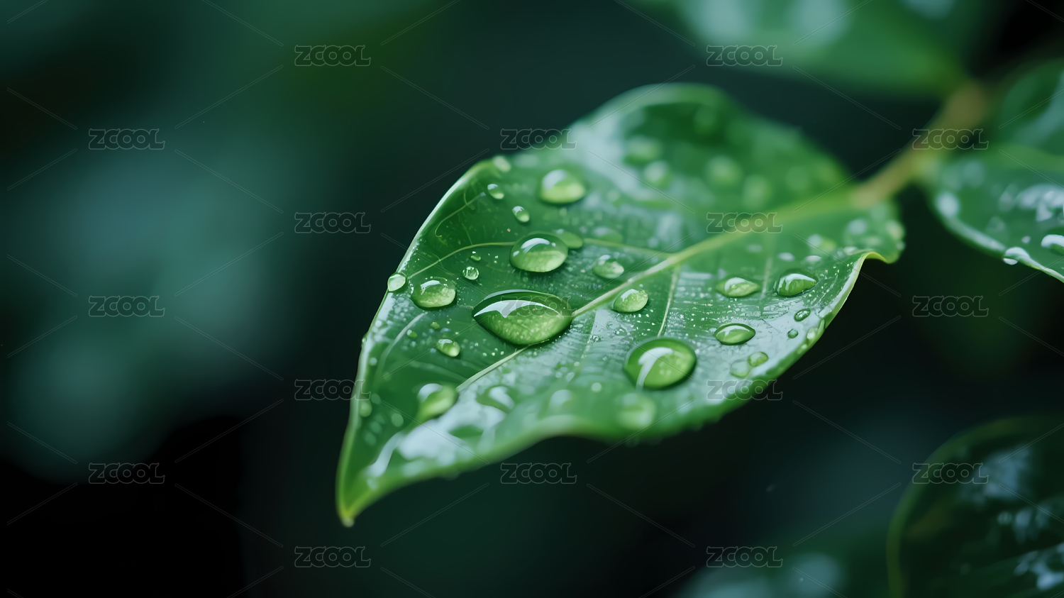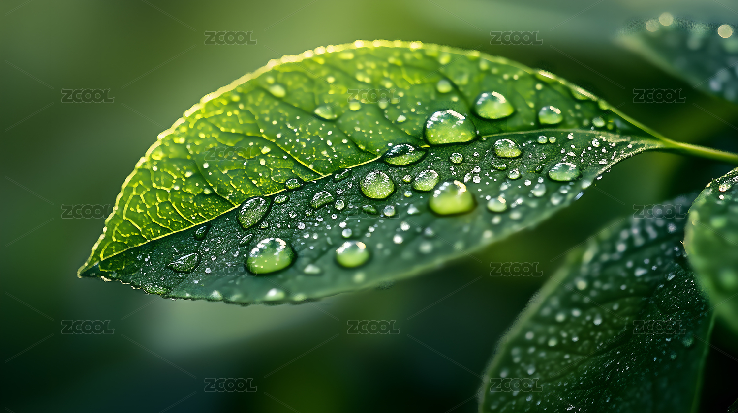 叶子,水滴,绿色,清新,自然,雨后,透明,晶莹,滴落,湿润