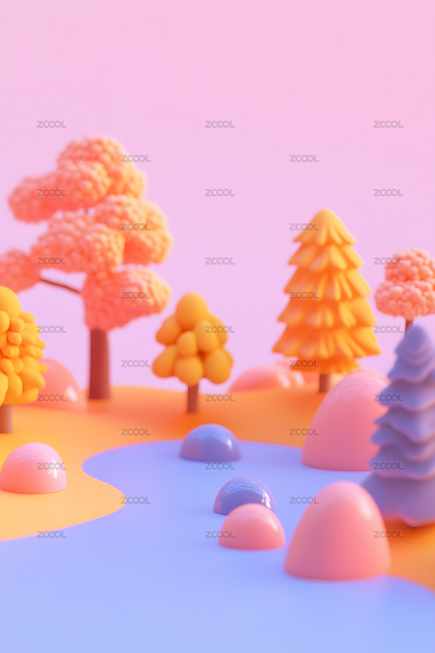 3d,立体,可爱,卡通,温柔,柔和,彩色,风景,山峰,景观