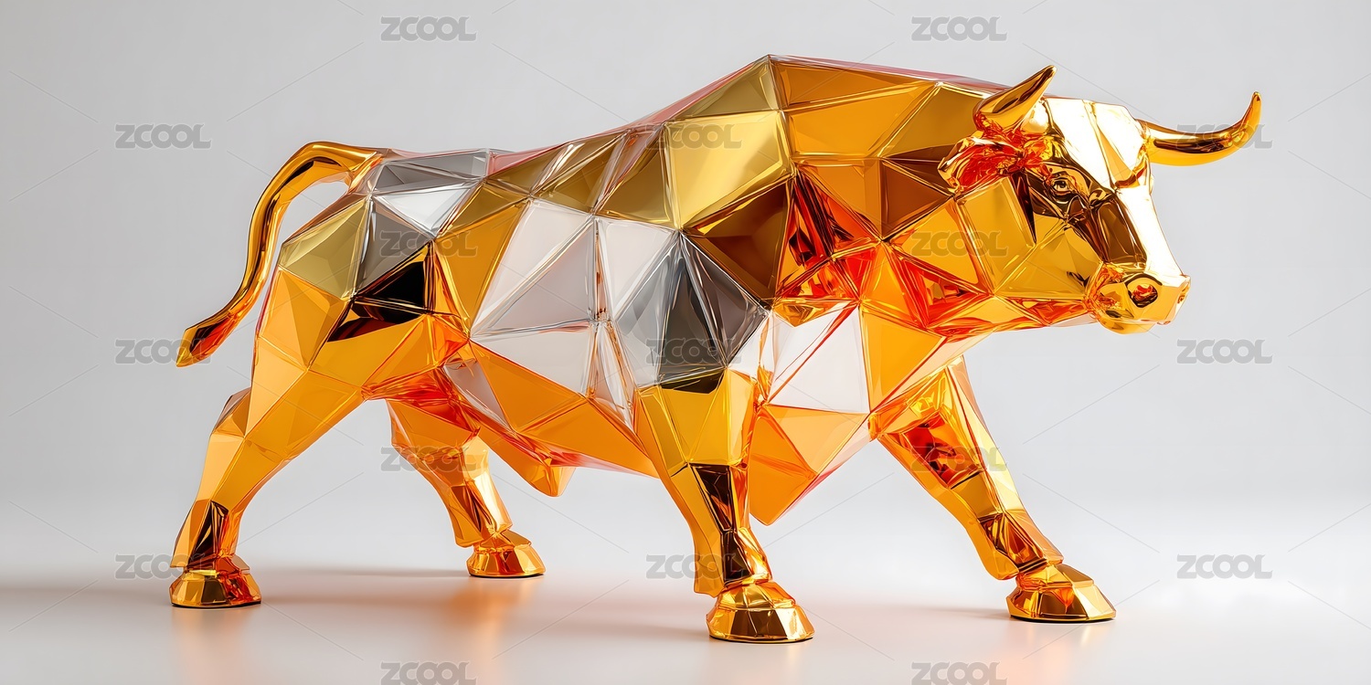 金色多边形公牛雕塑艺术品