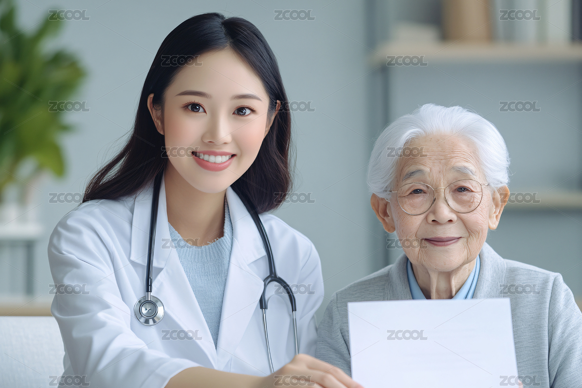 一个年轻的亚洲女医生做健康检查,以资深的中国女人,老年人保健
