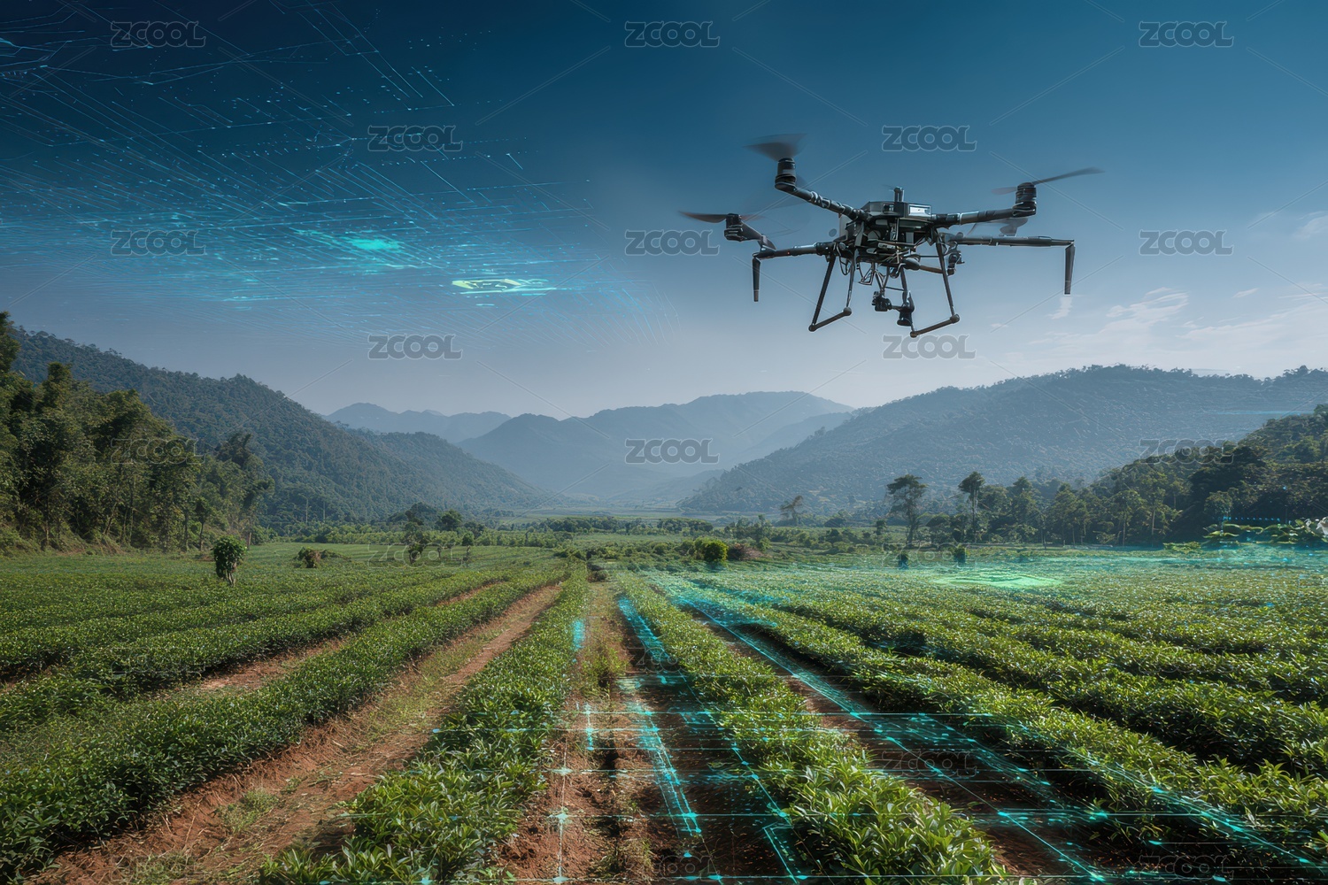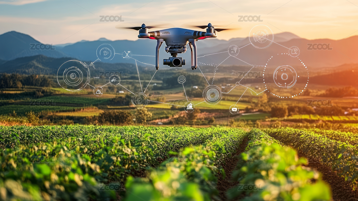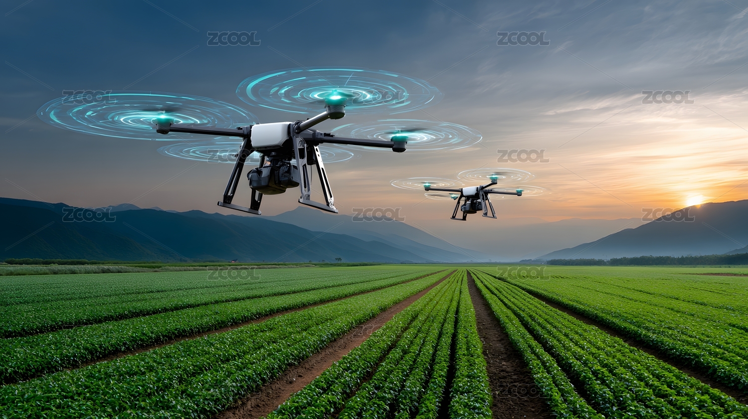 智慧农业植保无人机科学耕种,乡村振兴概念