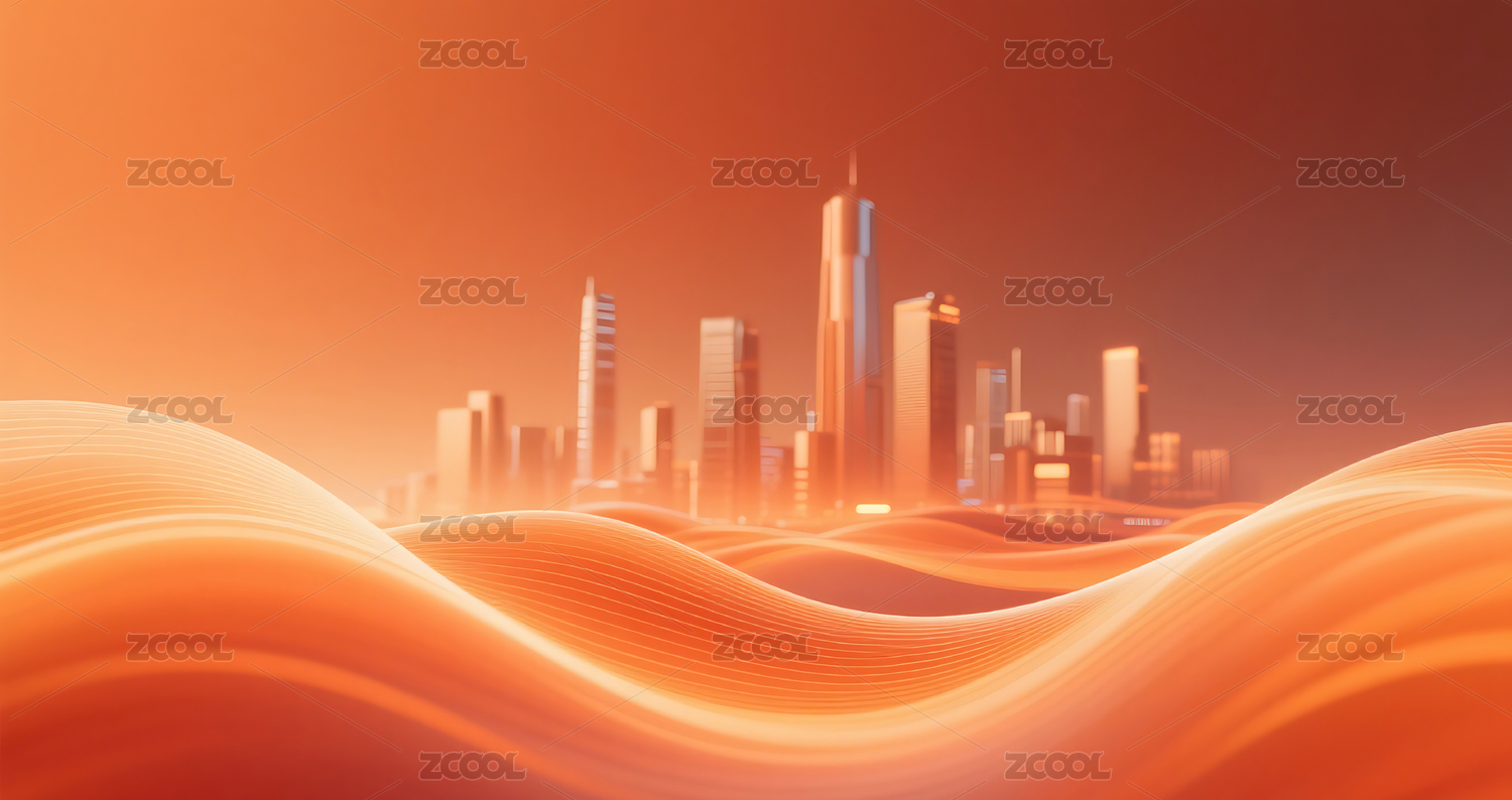 橙金色绸缎布料城市建筑天际线商务庆典背景