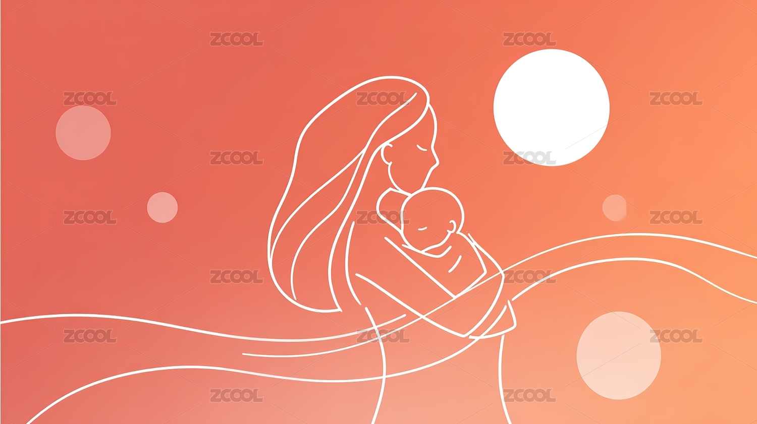 绘画,红色,母爱,温柔,关爱,呵护,温暖,拥抱,婴儿,亲情