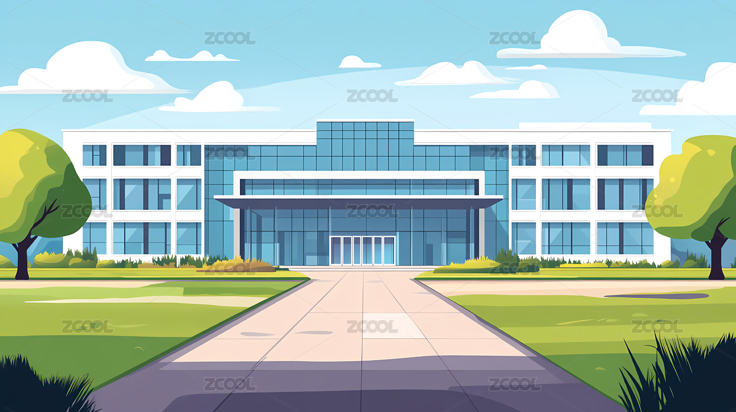 建筑, 树木, 美丽, 自然, 白云, 和谐, 现代, 天空, 清新, 草坪