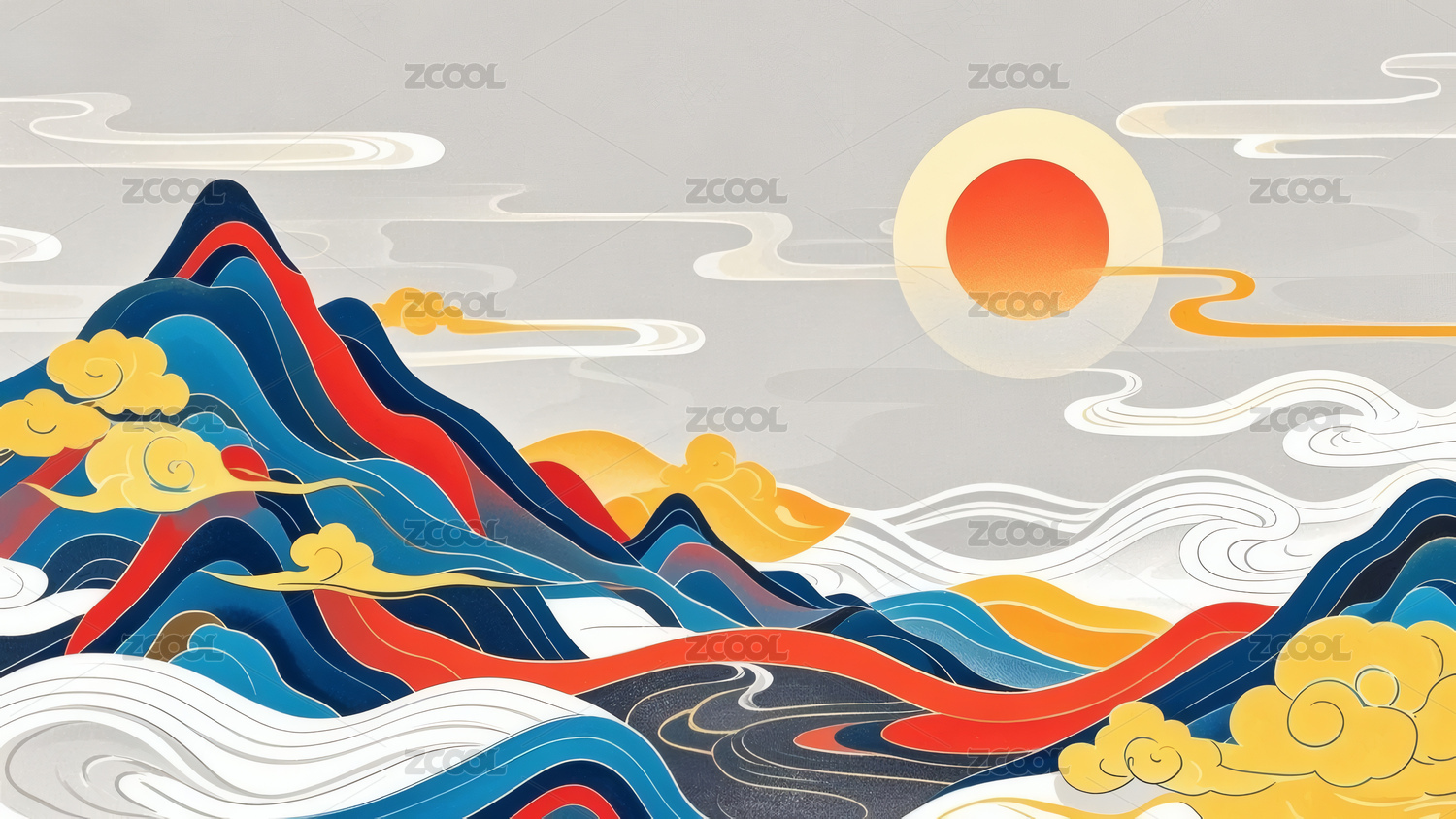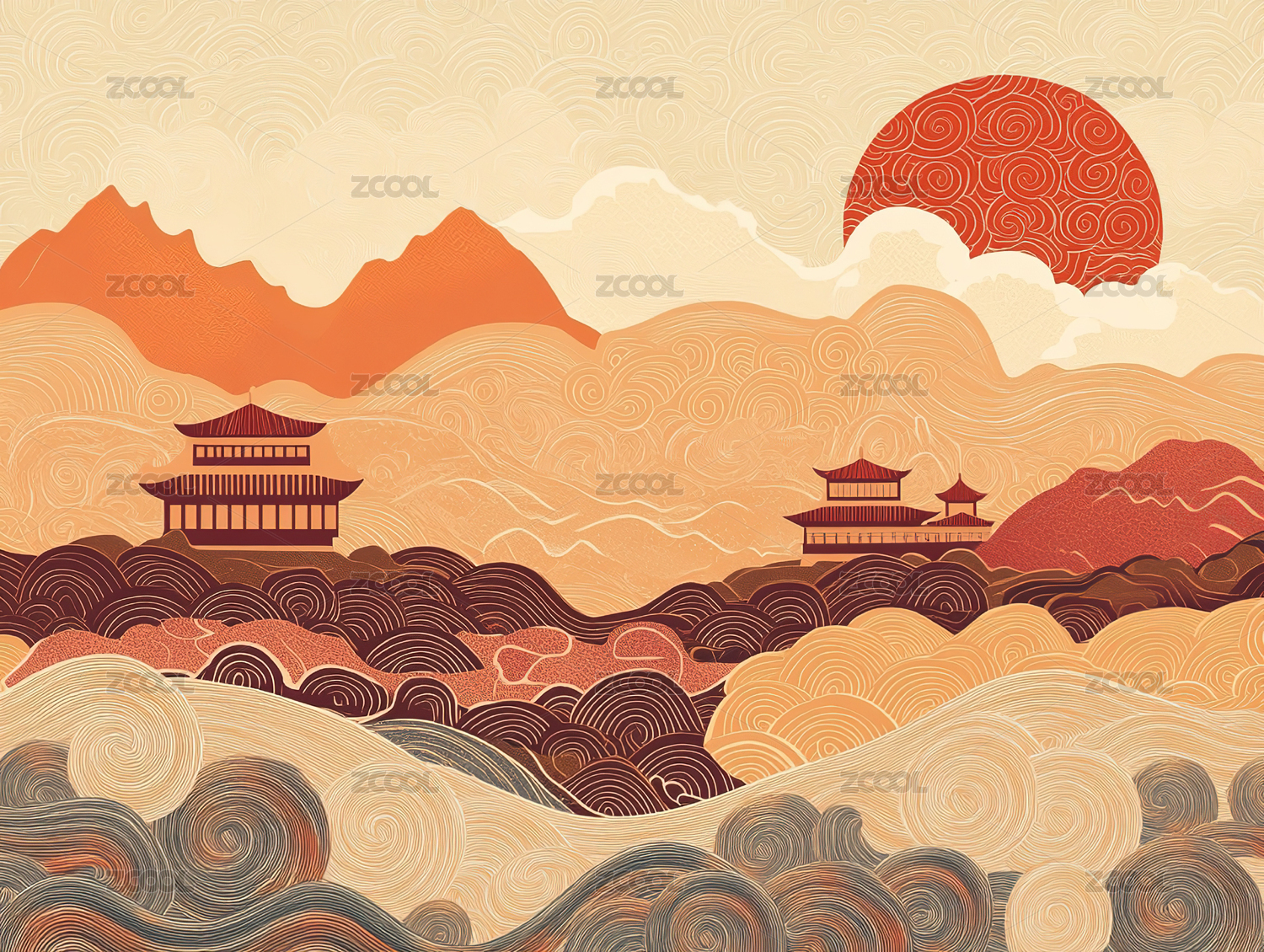 复古祥云风景