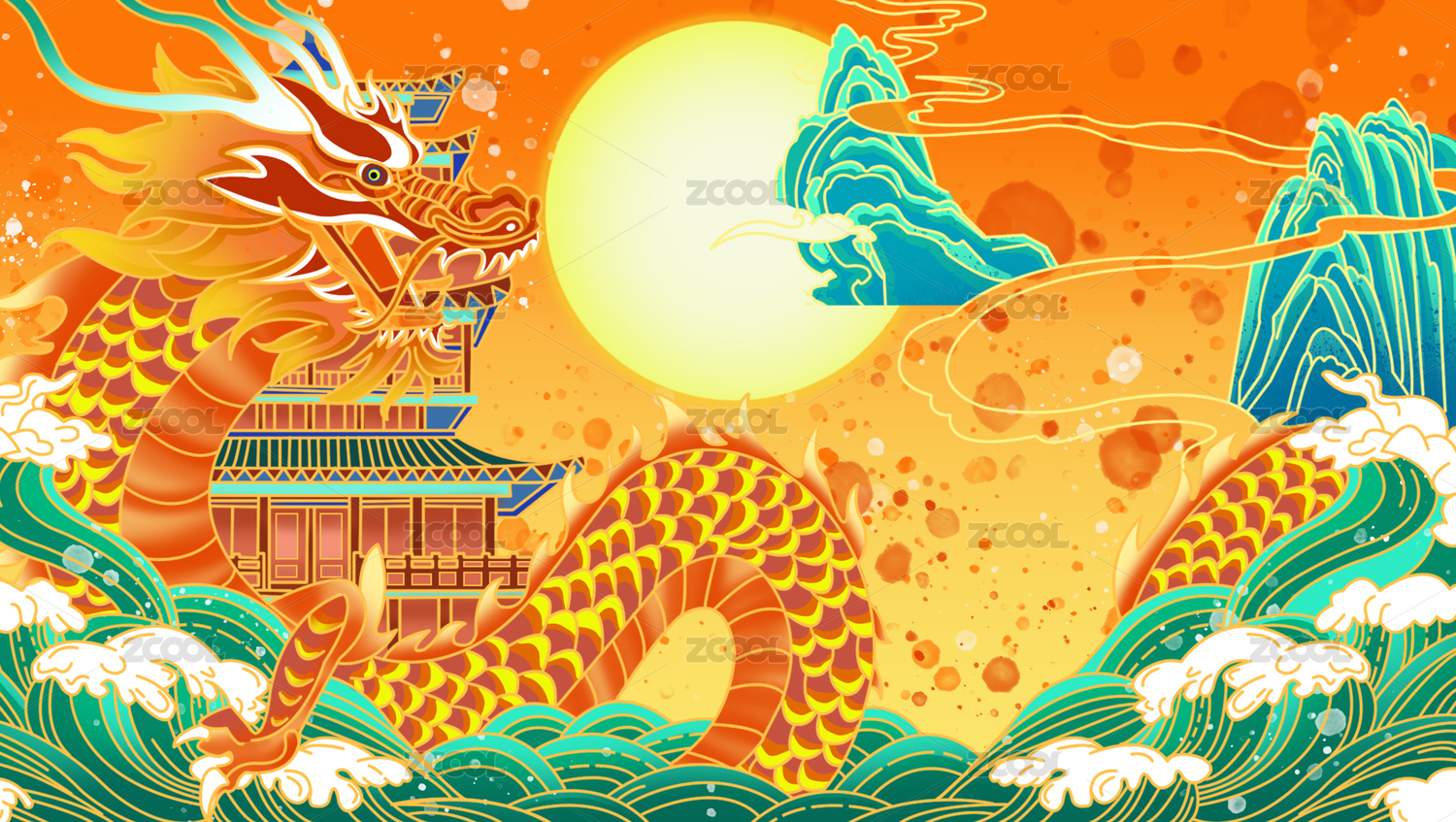 龙凤山水中国风插画