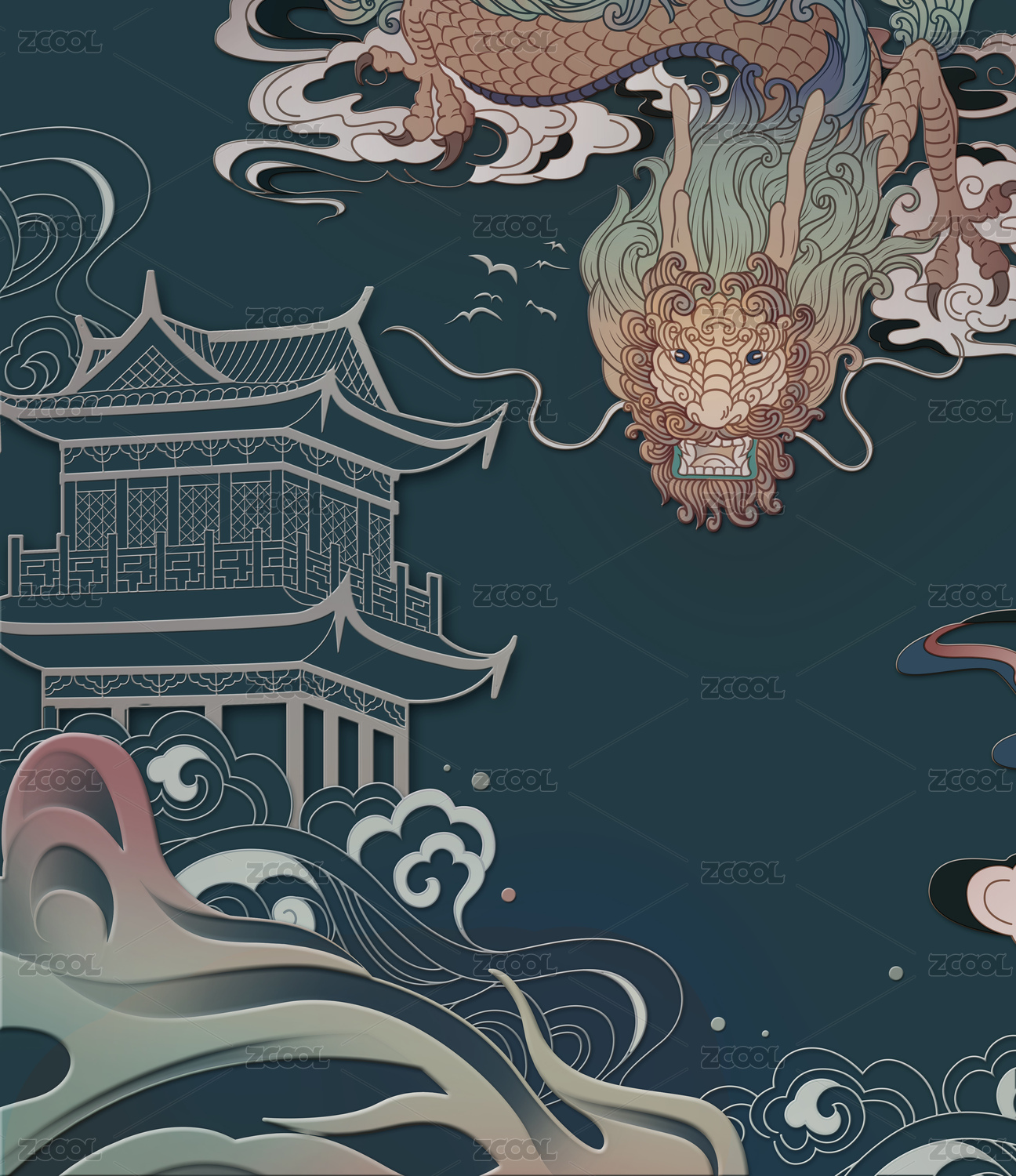 中国风龙纹山水背景图案