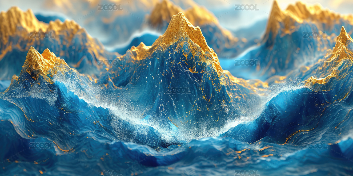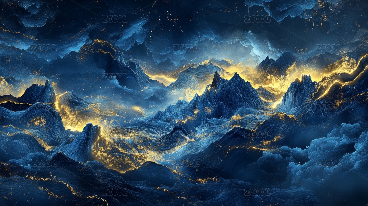 自然,山脉,蓝色,金色,山峰,质感,抽象,背景,纹理,光影