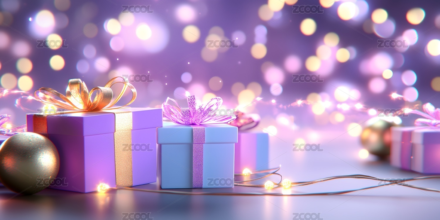 3D渲染红色圣诞装饰礼盒丝带闪耀背景