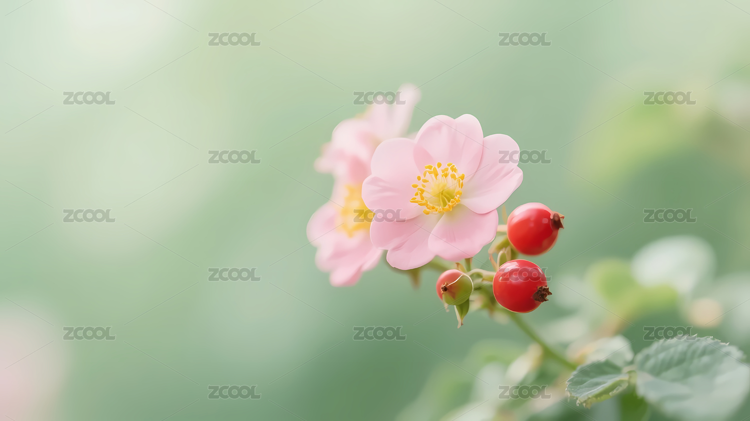 粉色花朵与绿色植物
