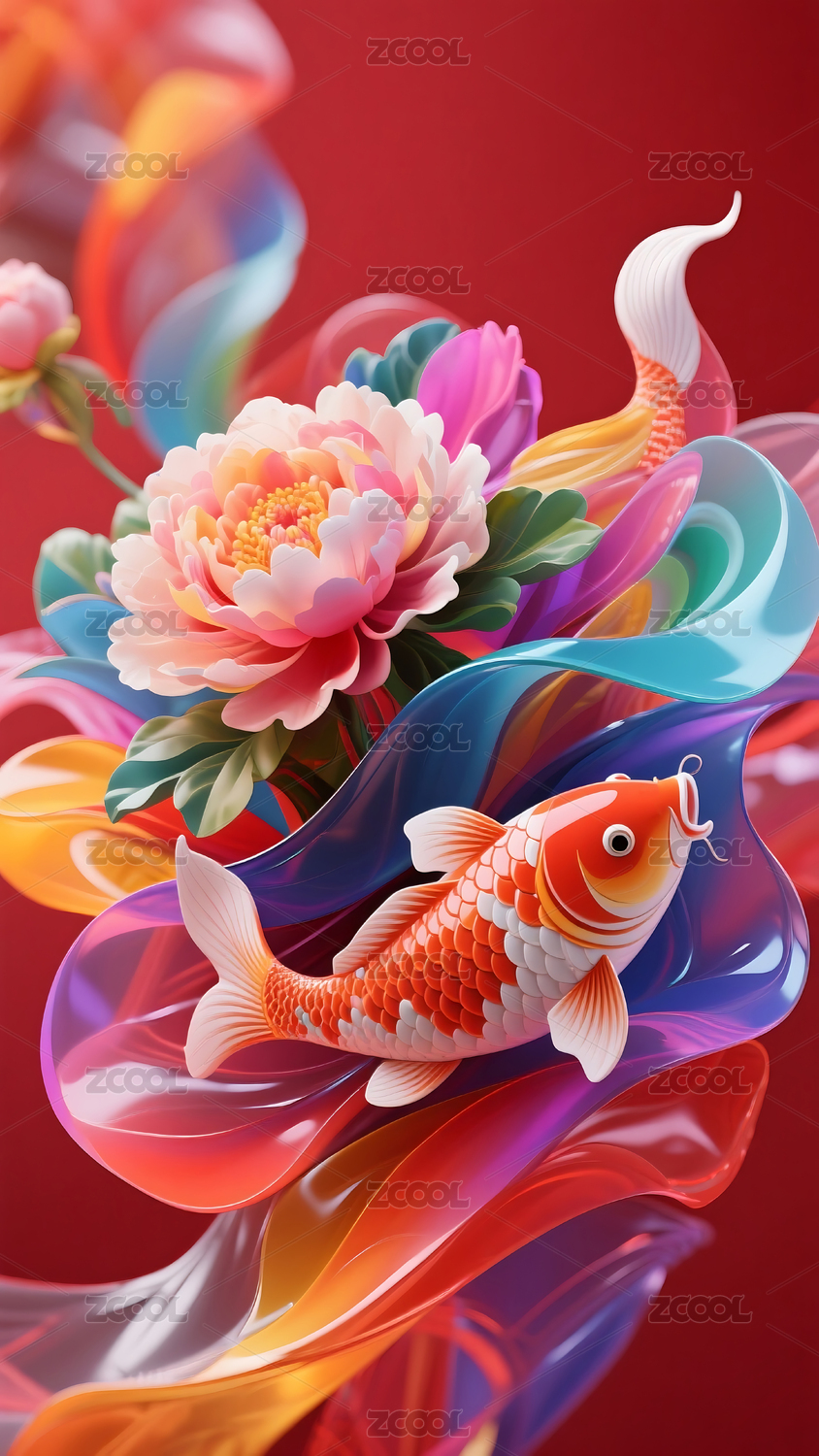 可爱锦鲤3d形象新年跳跃鲤鱼国风三维插画