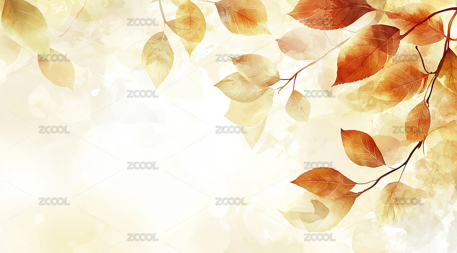 水彩风格水墨晕染秋季黄叶背景