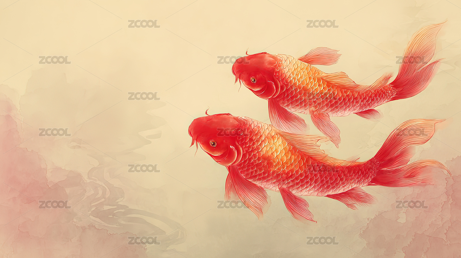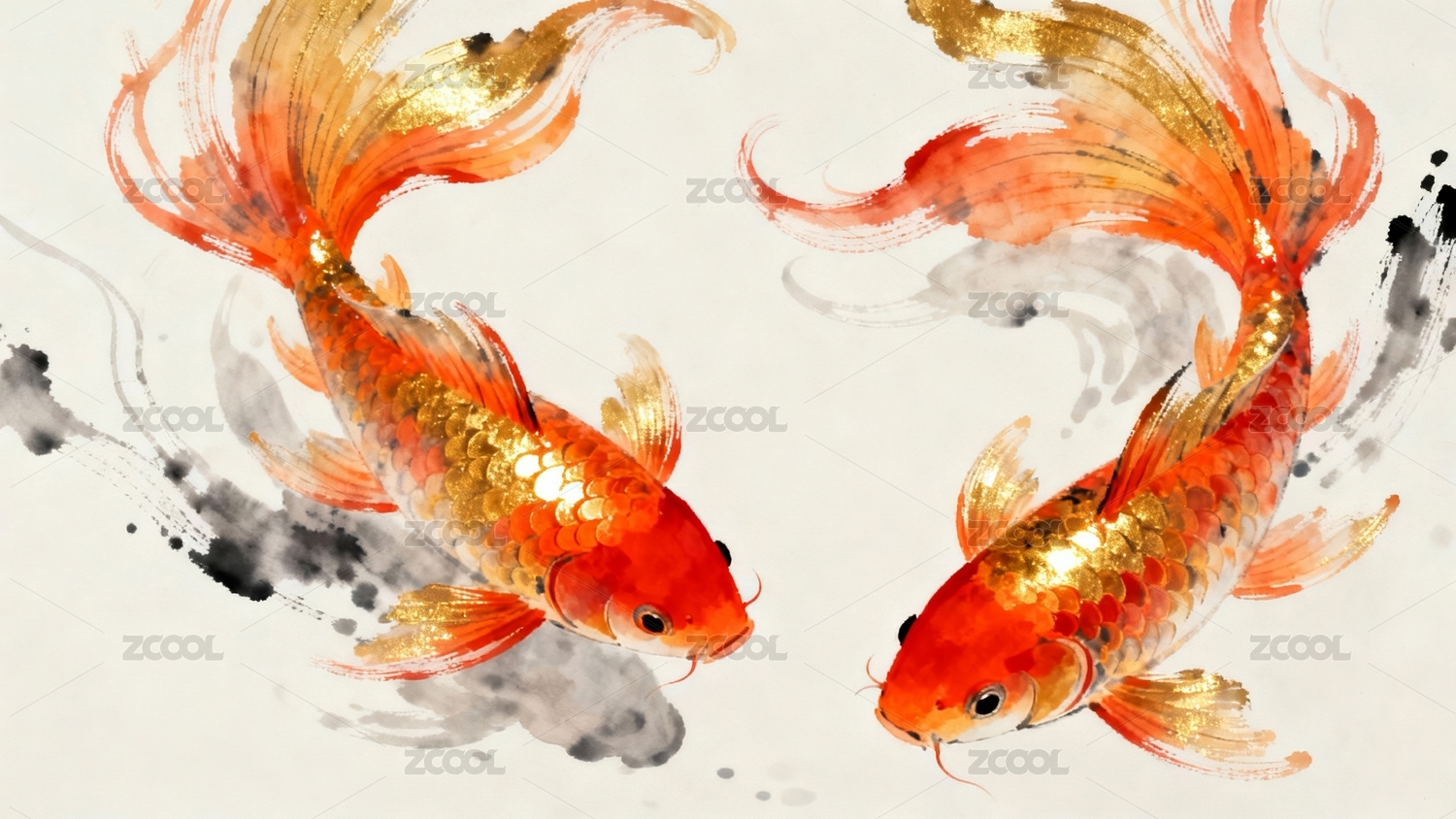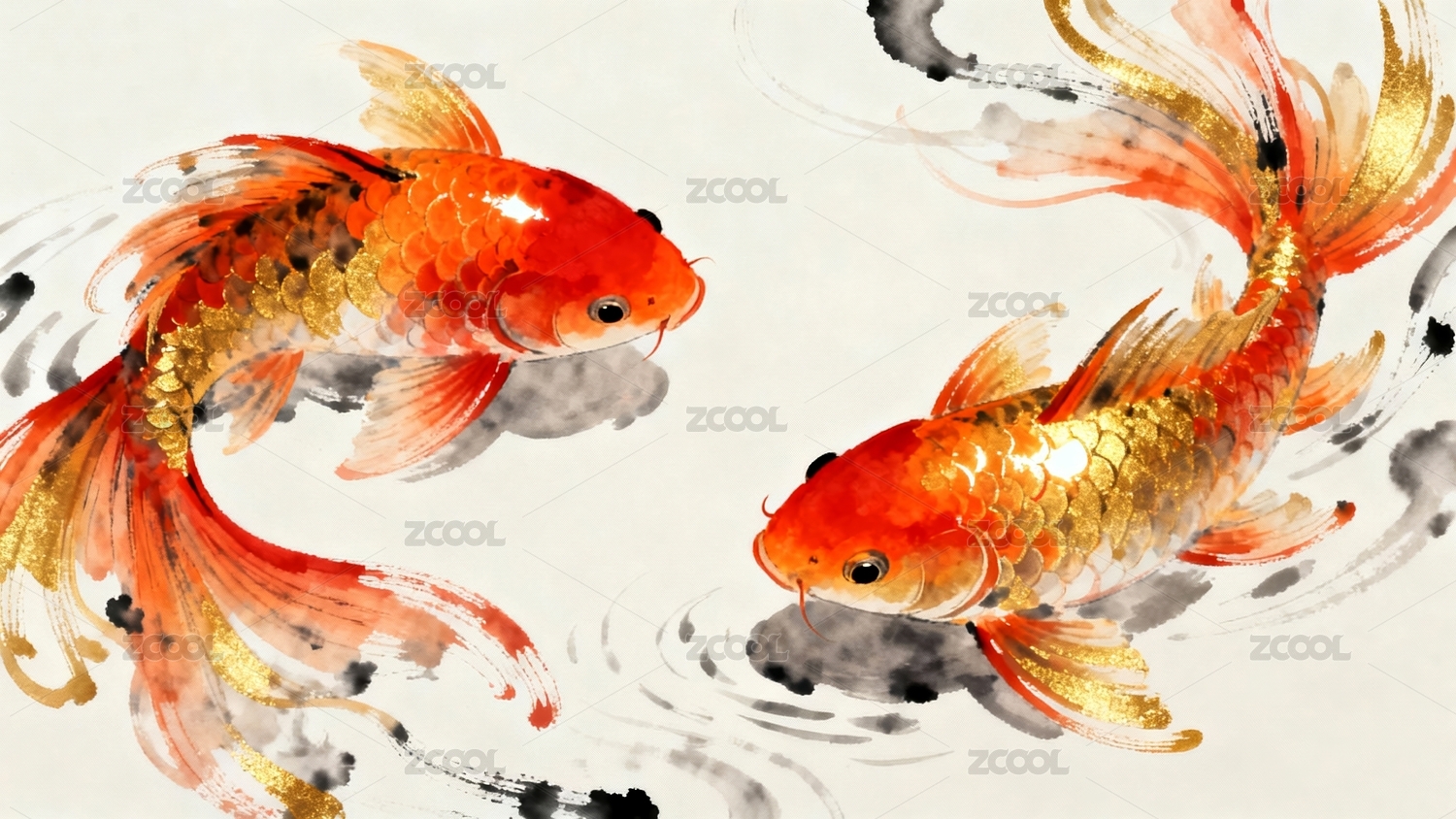 艺术,美丽,自然,优雅,传统,文化,绘画,红白,和谐,锦鲤