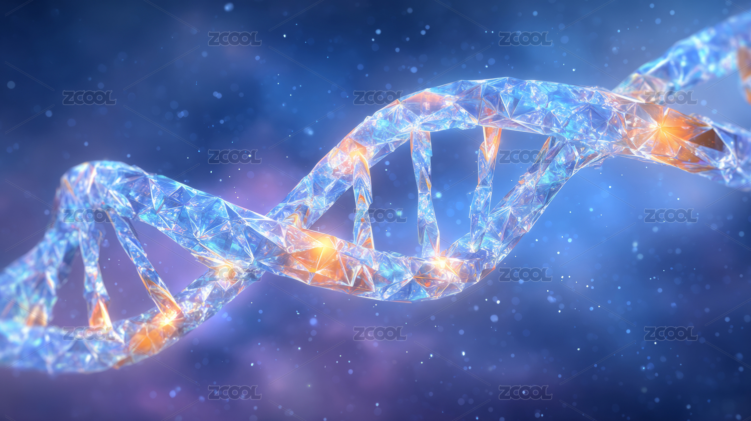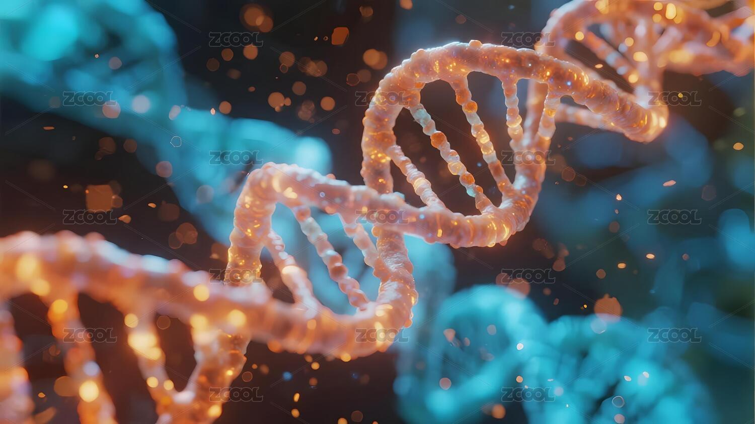 蓝色DAN螺旋分子结构发着橙色的光背景