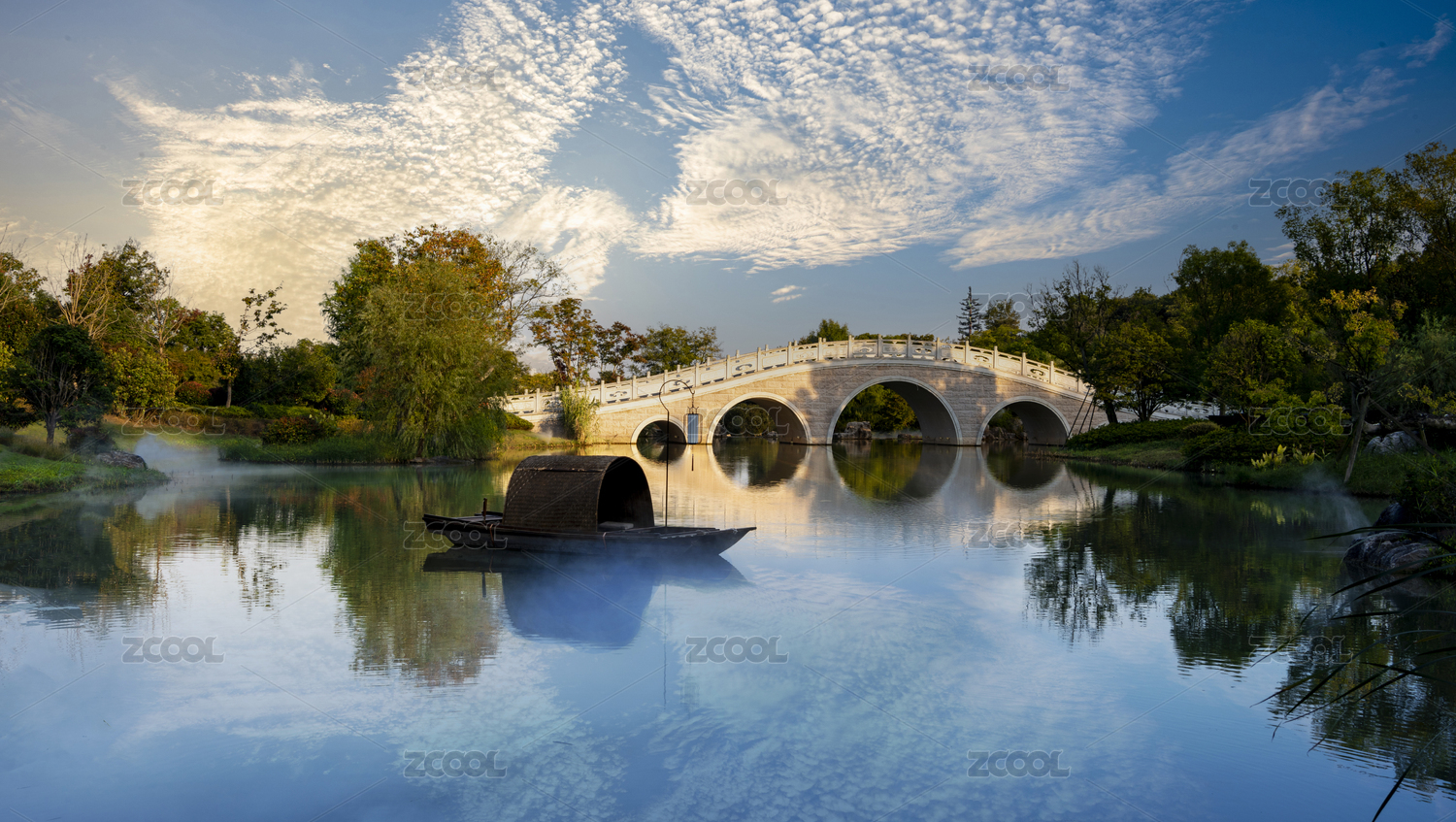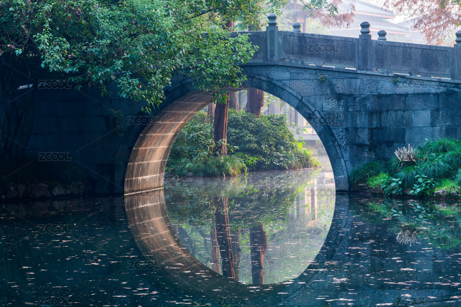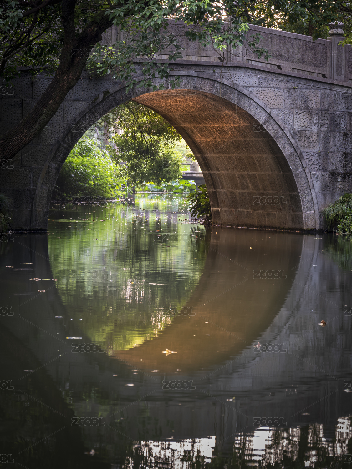 江南杭州西湖曲院风荷春天拱桥桥洞下风景