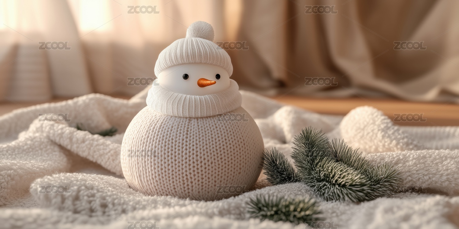 冬季羊毛毡毛线毛绒雪人3D卡通立体插画