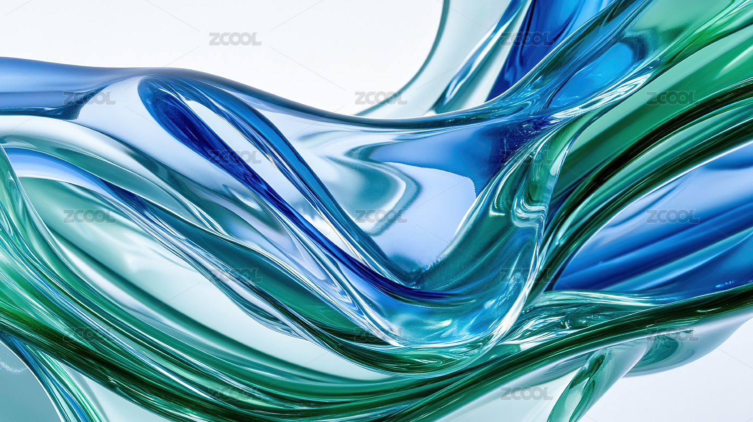 流体,绿色,波浪,透明,渐变,天空,蓝天,光影,折射,反射