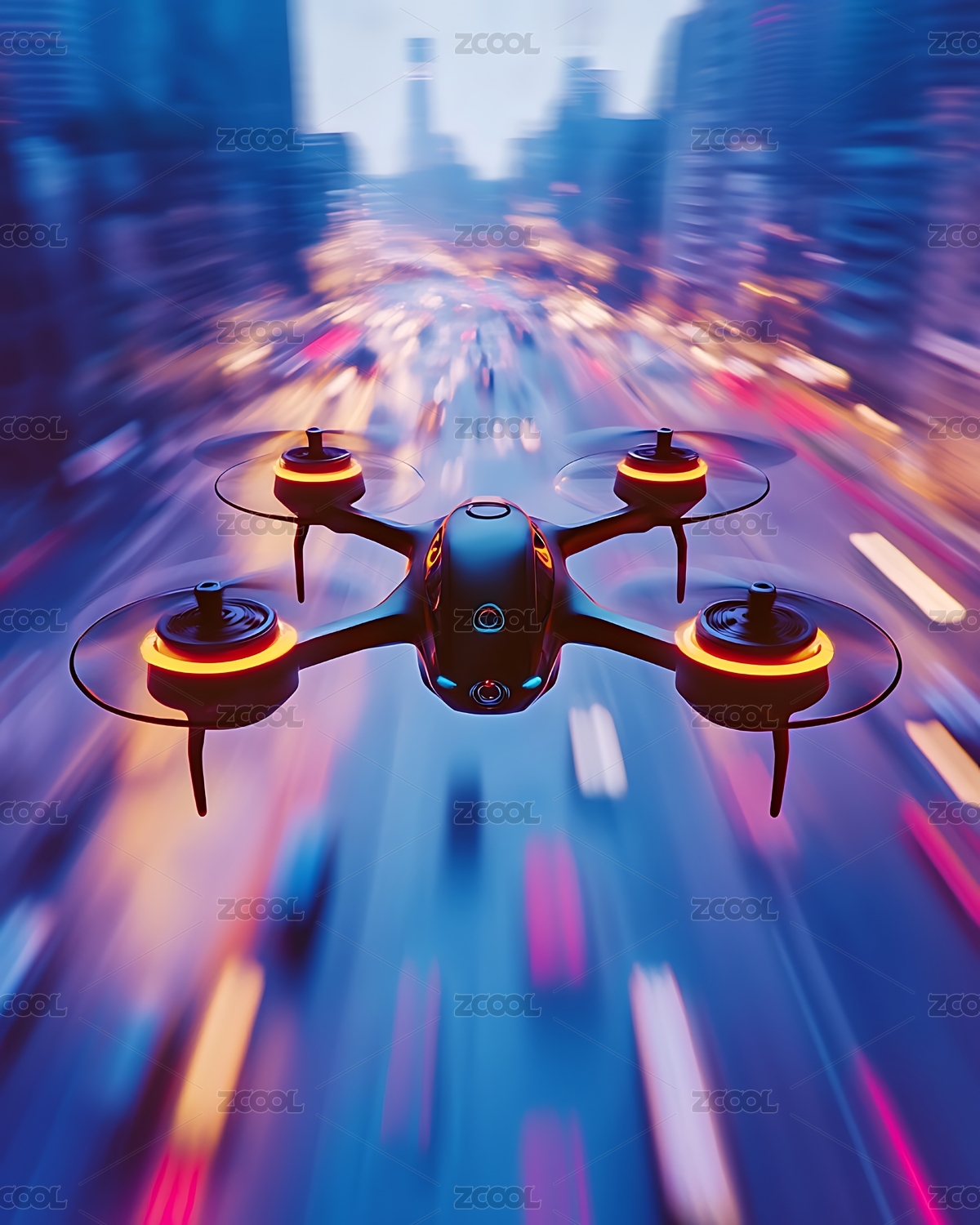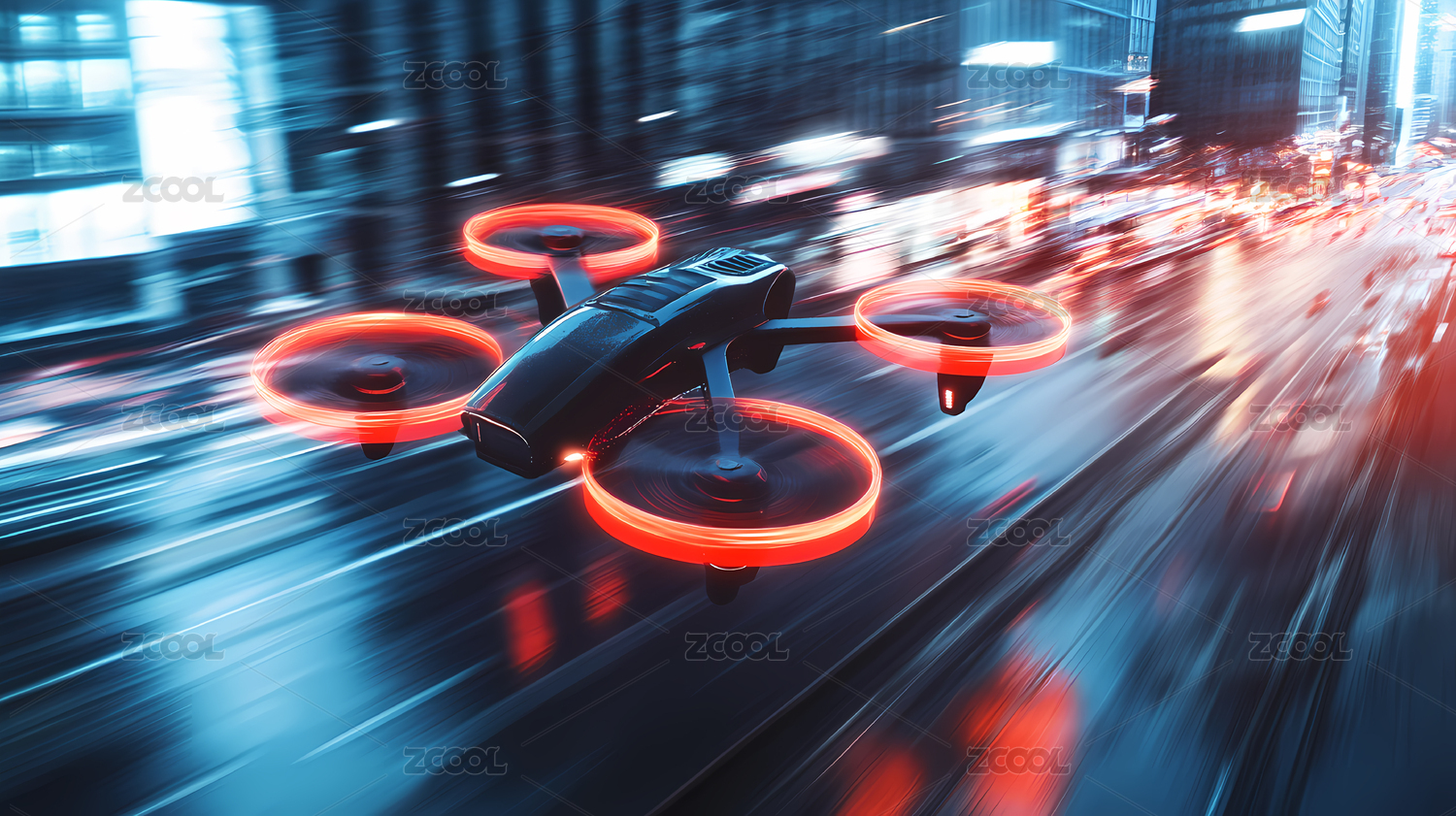 无人机,城市,交通,监控,科技,摄像头,飞行,车辆,夜晚,灯光
