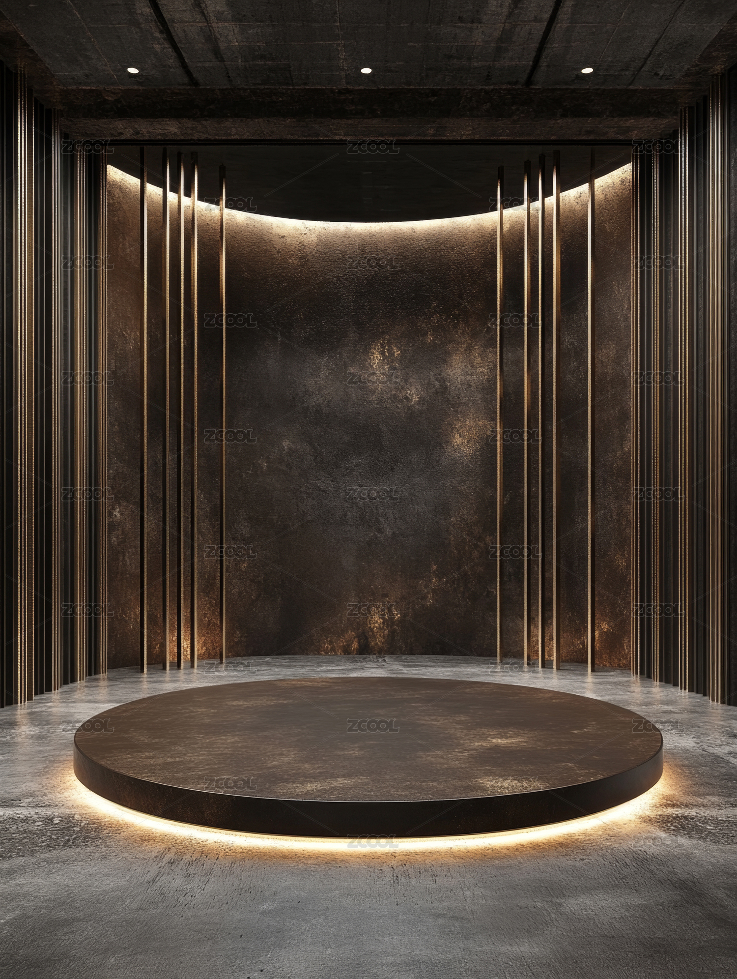 圆形,舞台,展示,平台,灯光,金属,质感,现代,室内,设计
