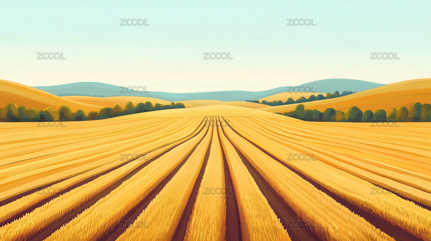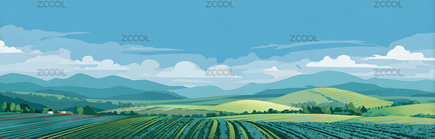 乡村茶田茶园茶山丘陵梯田卡通插画