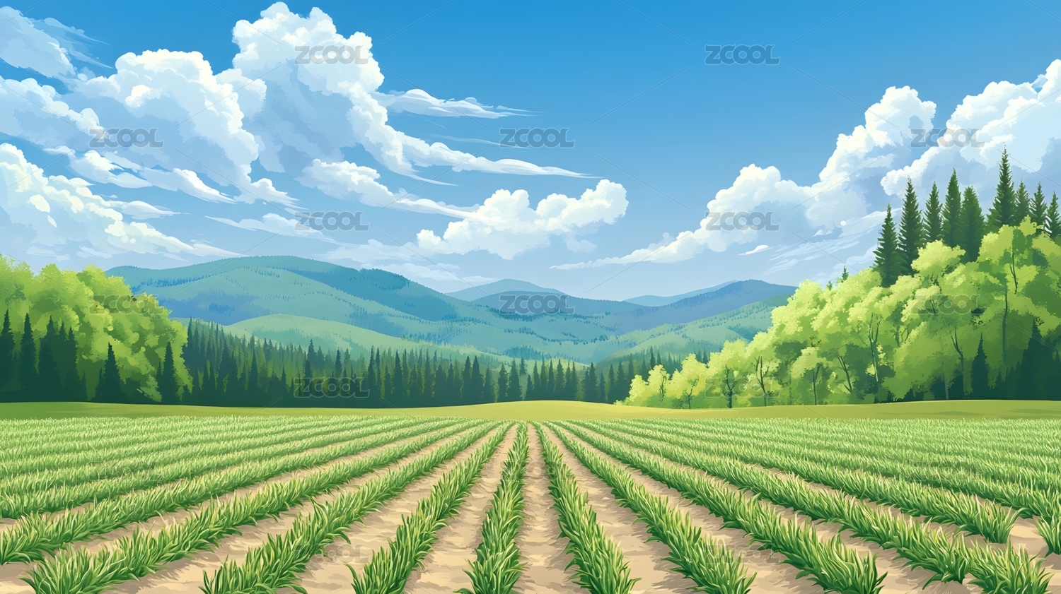 天空,绿色,蓝天,白云,田野,乡村,自然,风景,农业,宁静