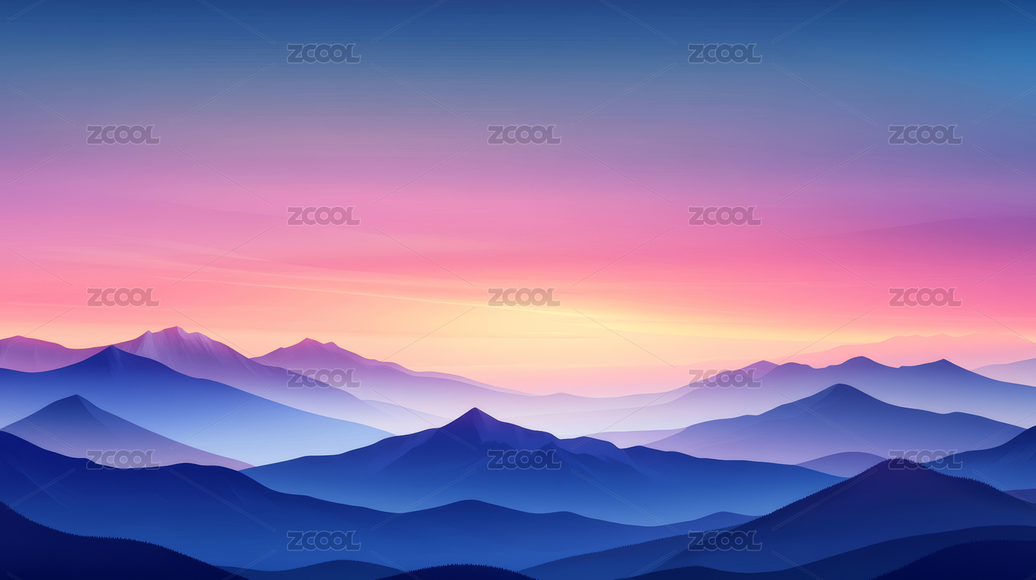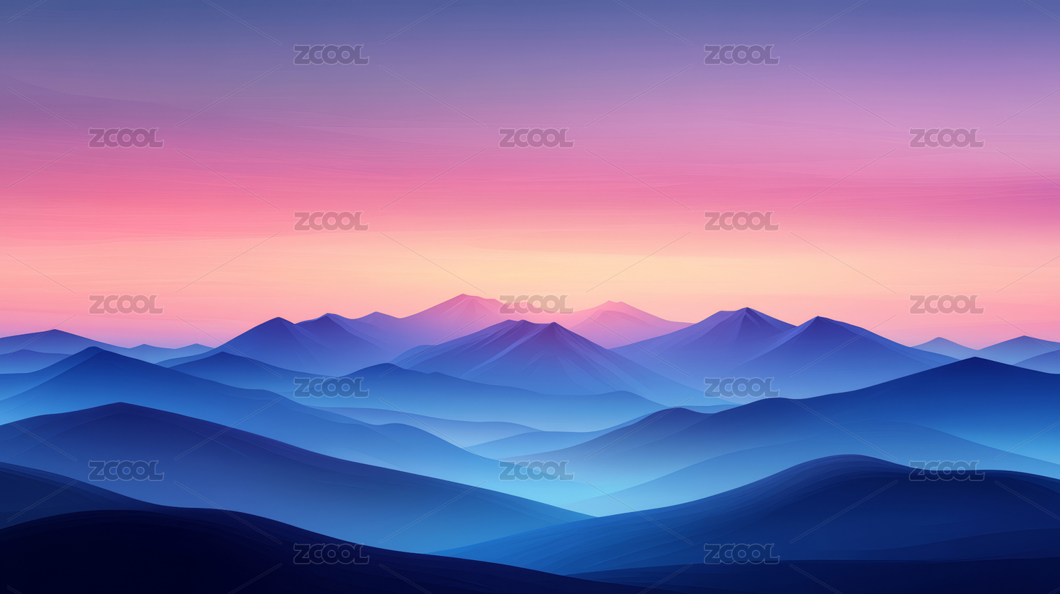 唯美, 艺术,山峰, 雾气, 朦胧, 蓝色, 粉色, 天空, 意境, 自然