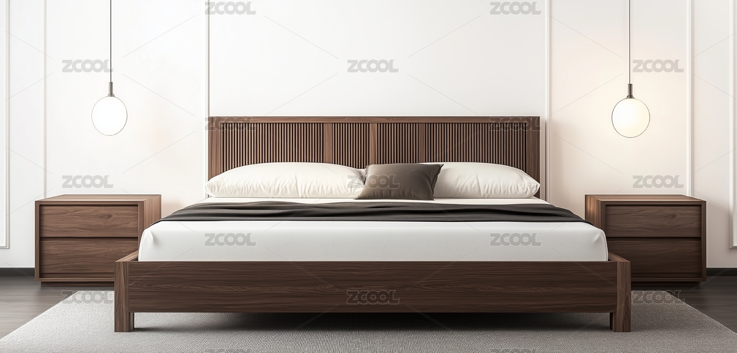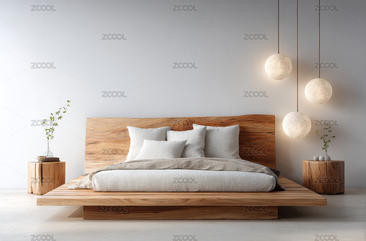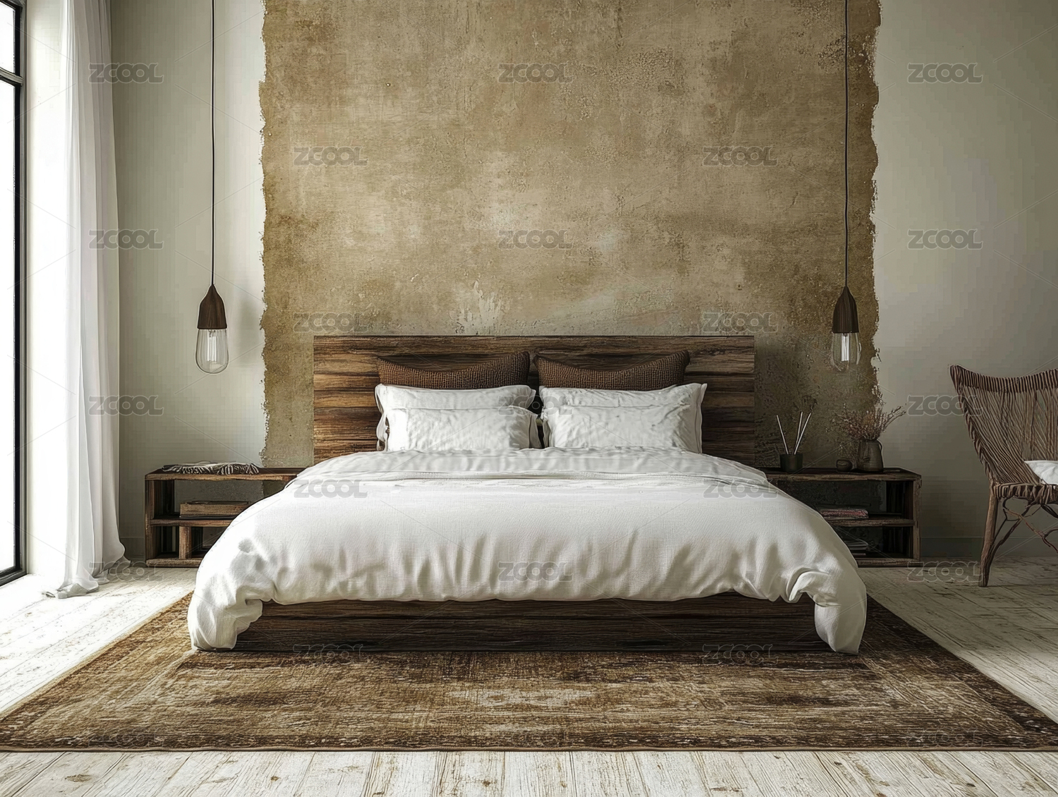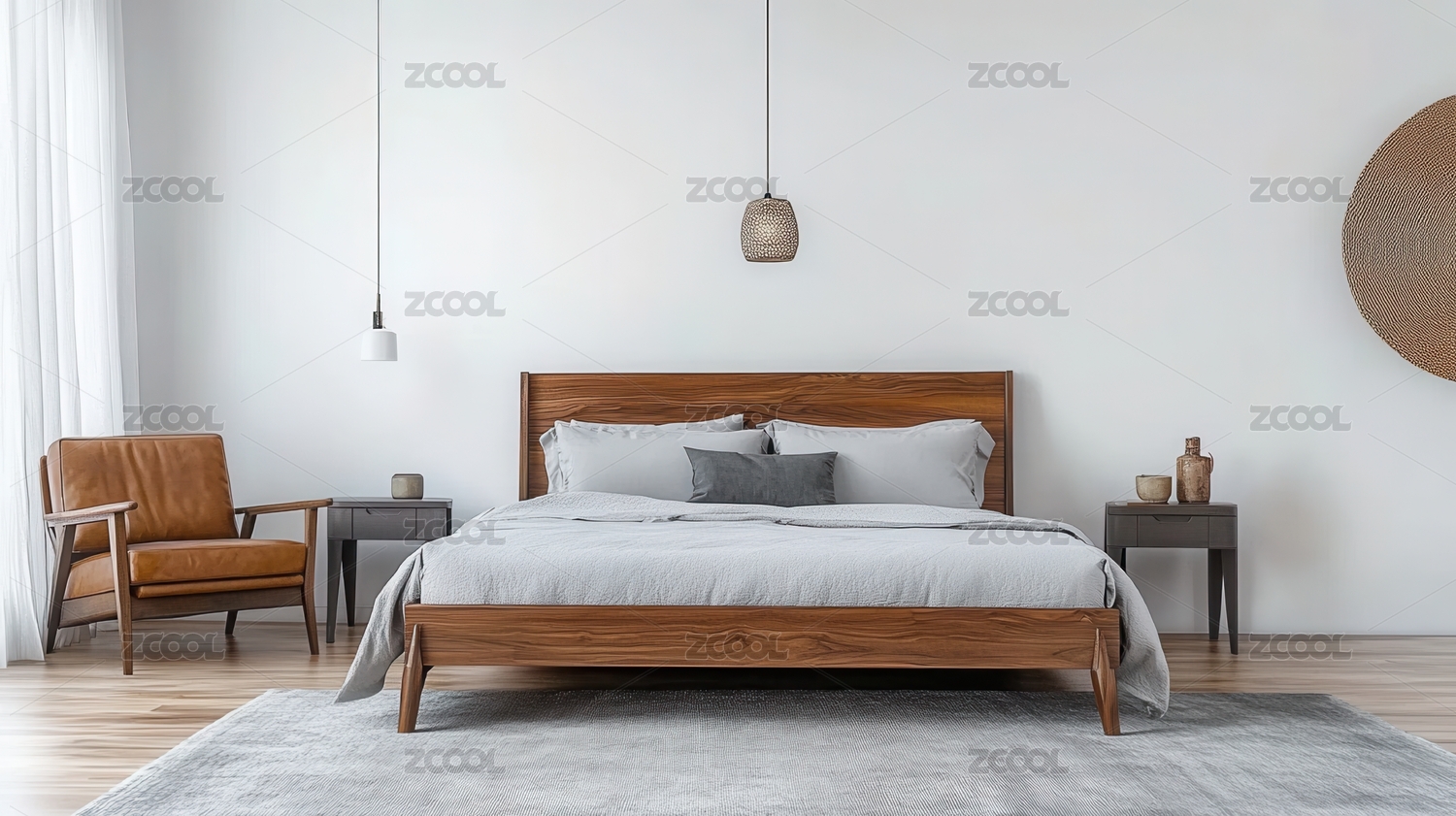 卧室,床,挂画,吊灯,绿植,地毯,落地窗,现代,家,设计