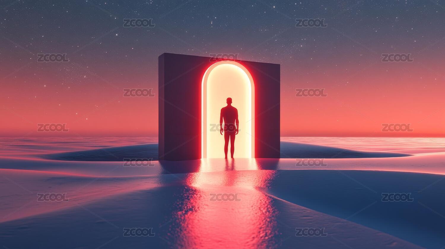 宇航员, 太空服, 紫色, 发光, 门, 神秘, 未来, 幻想, 科幻, 冒险