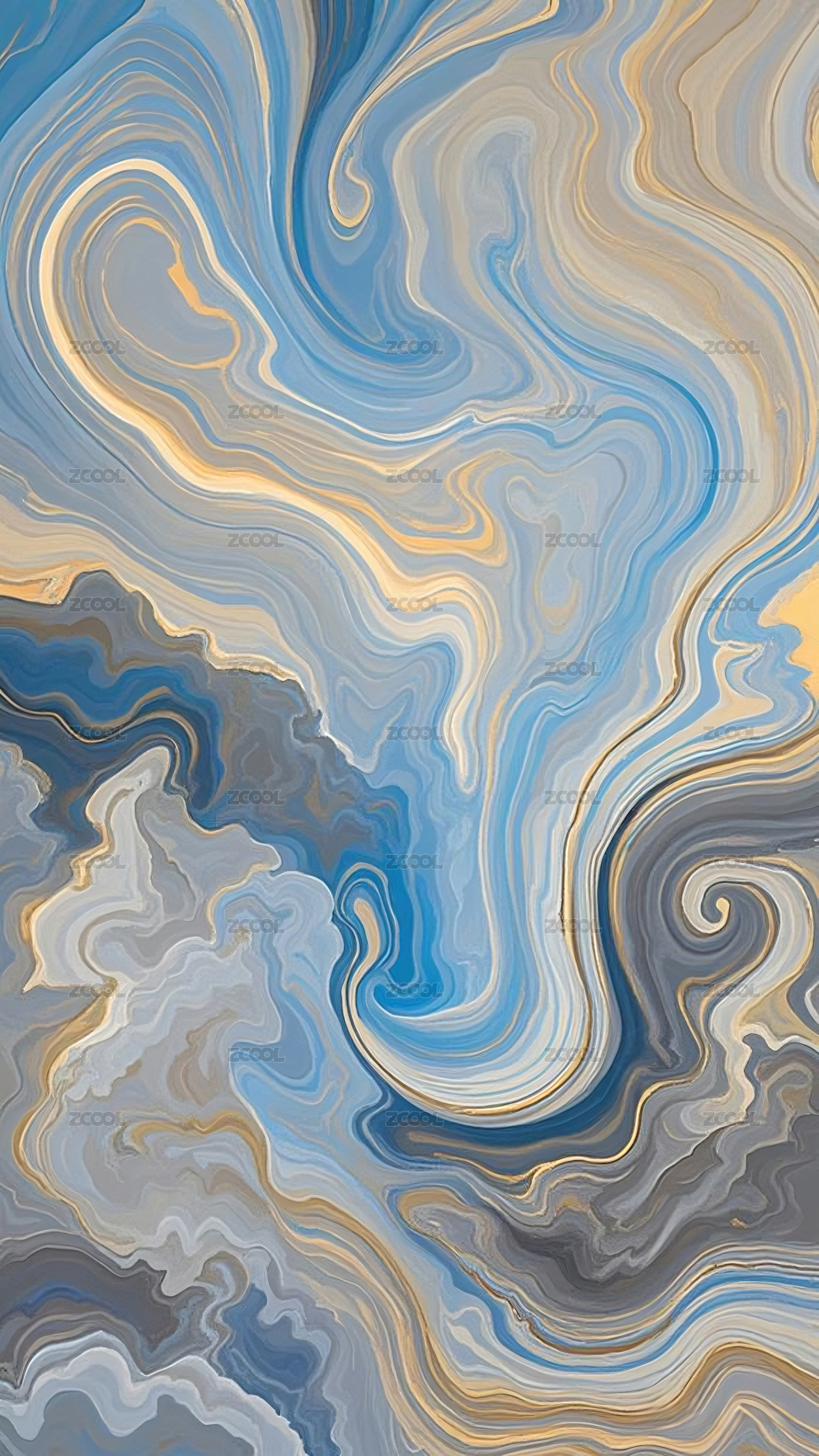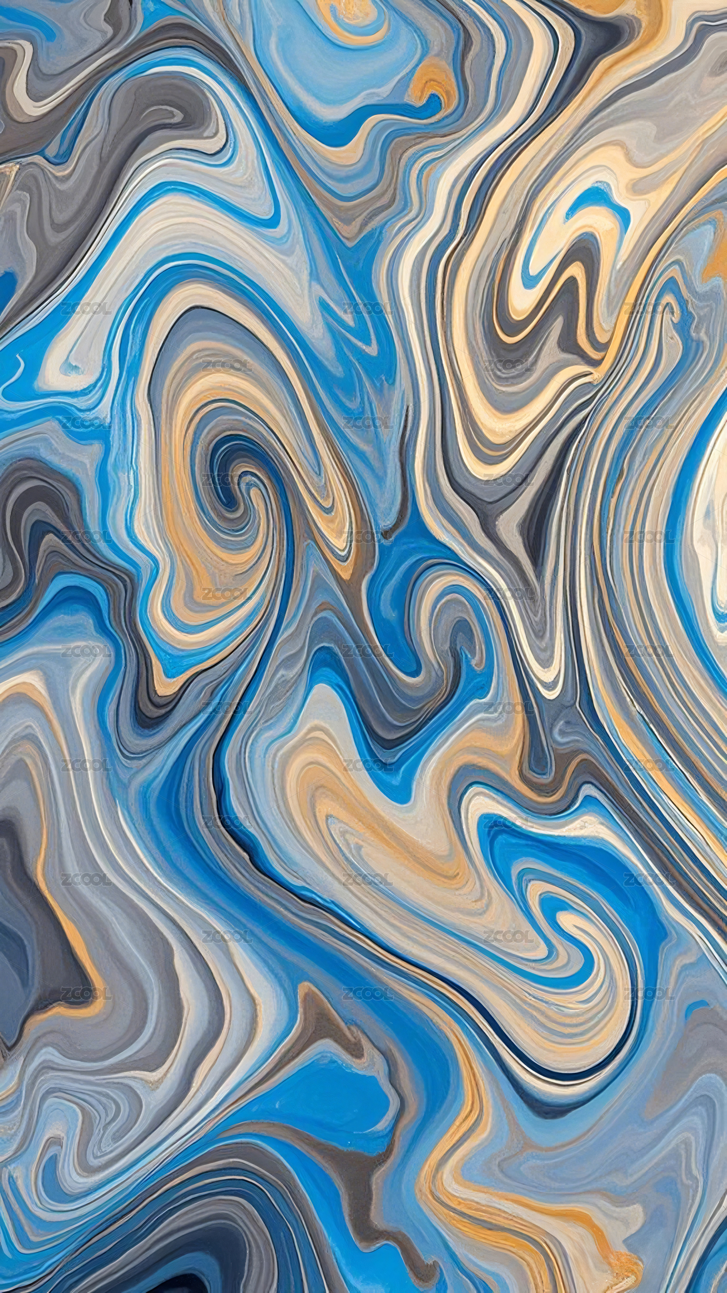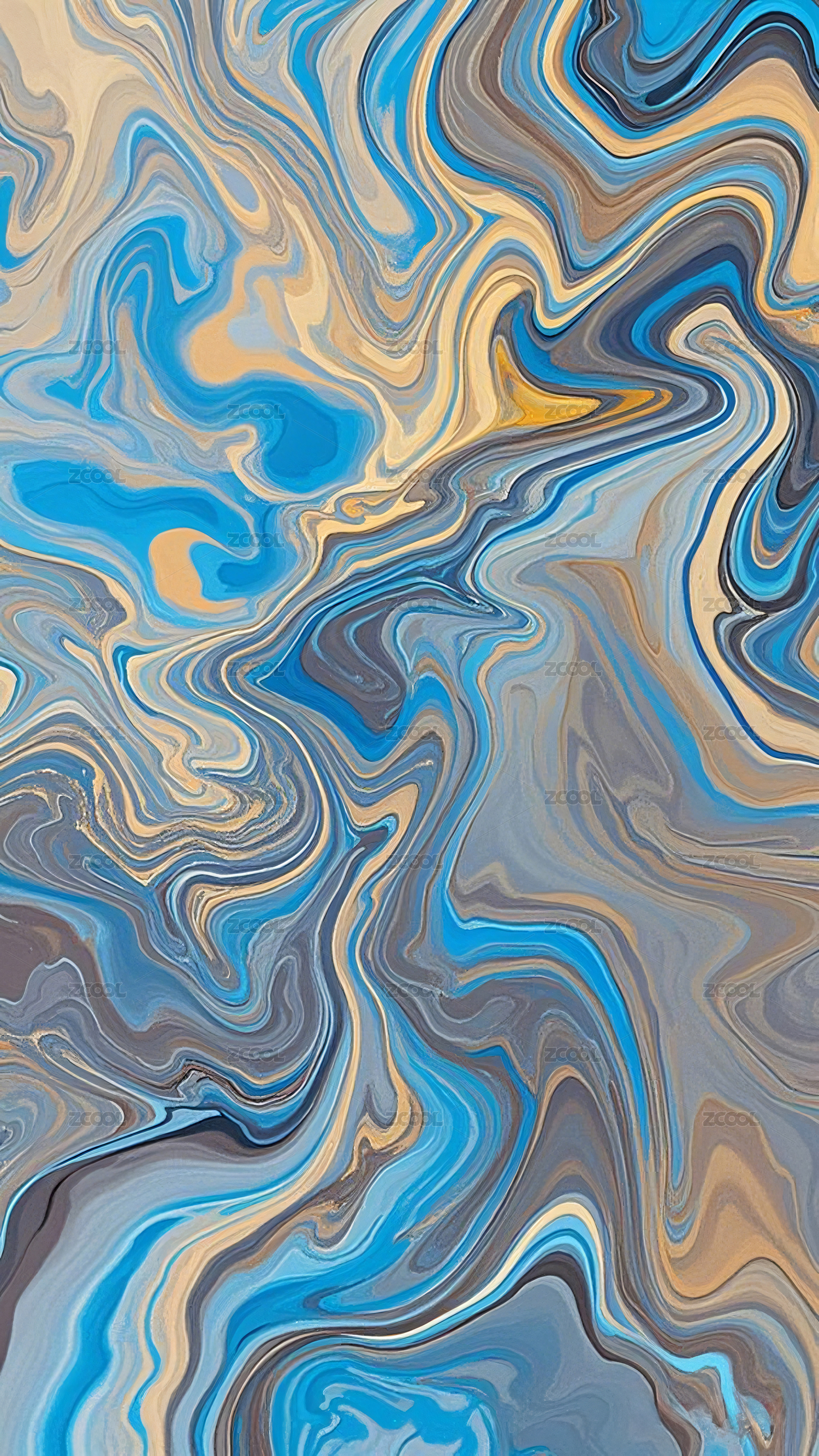蓝黄交织的流动抽象图案
