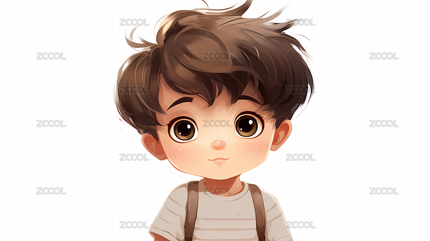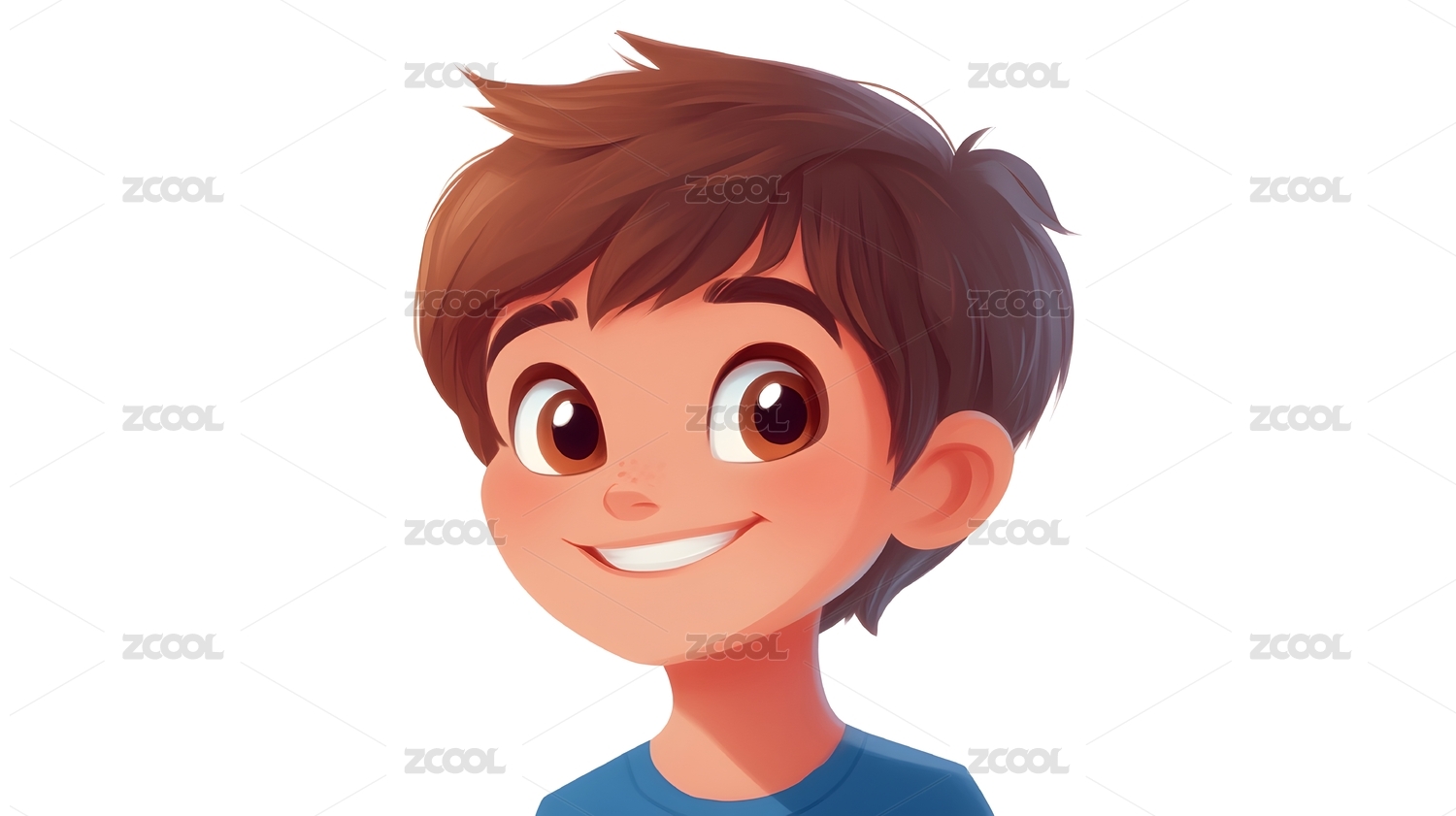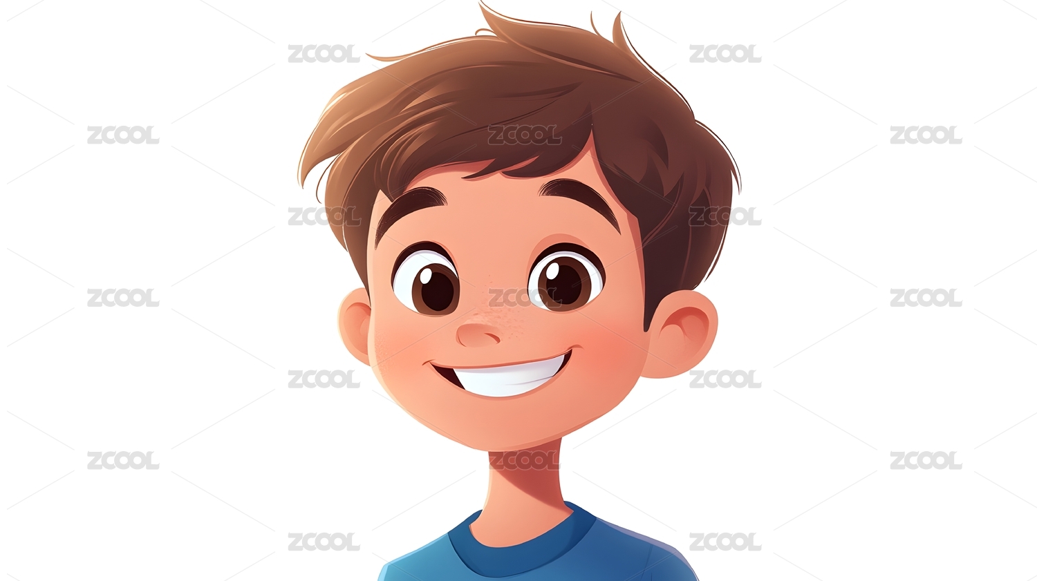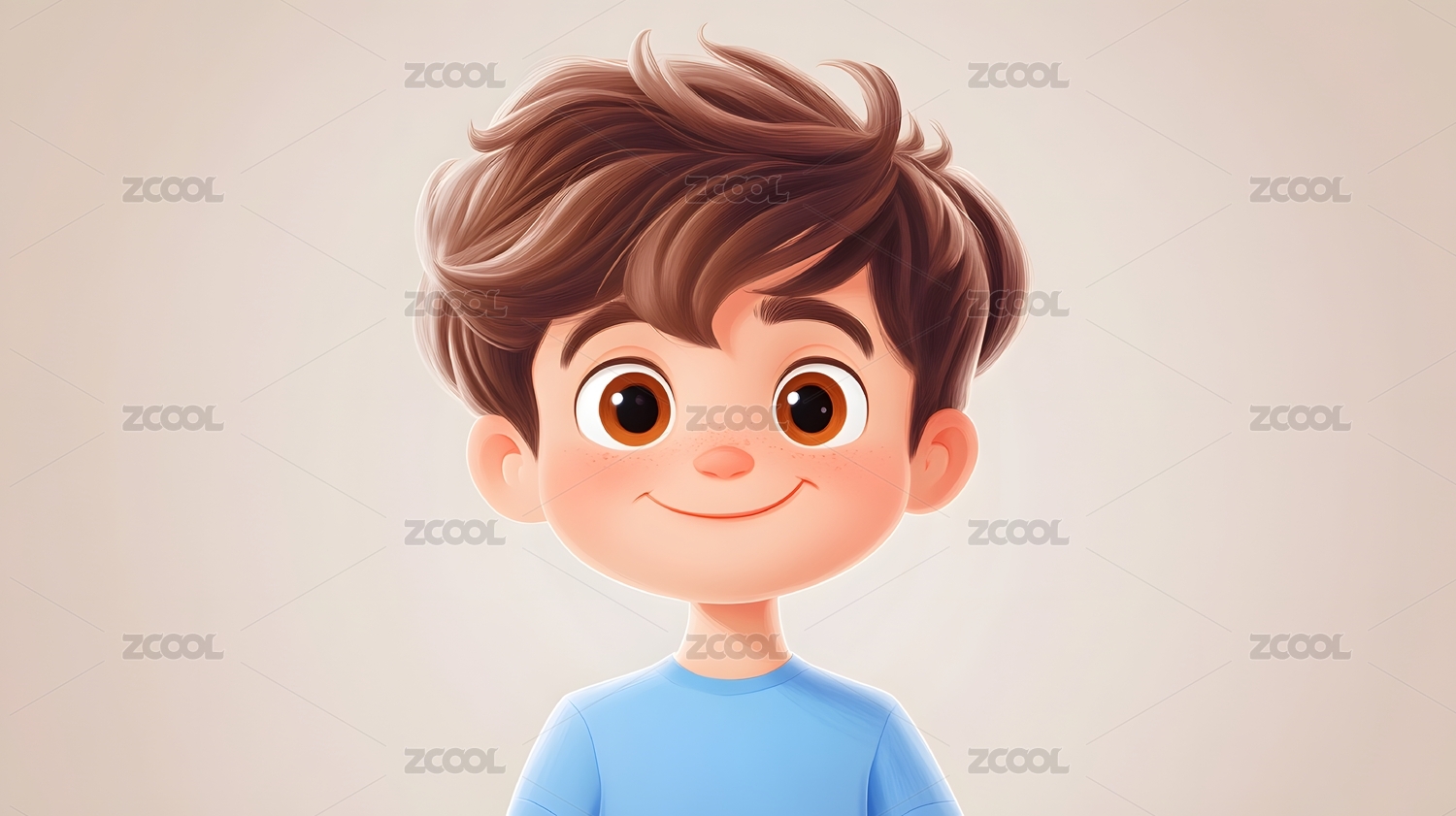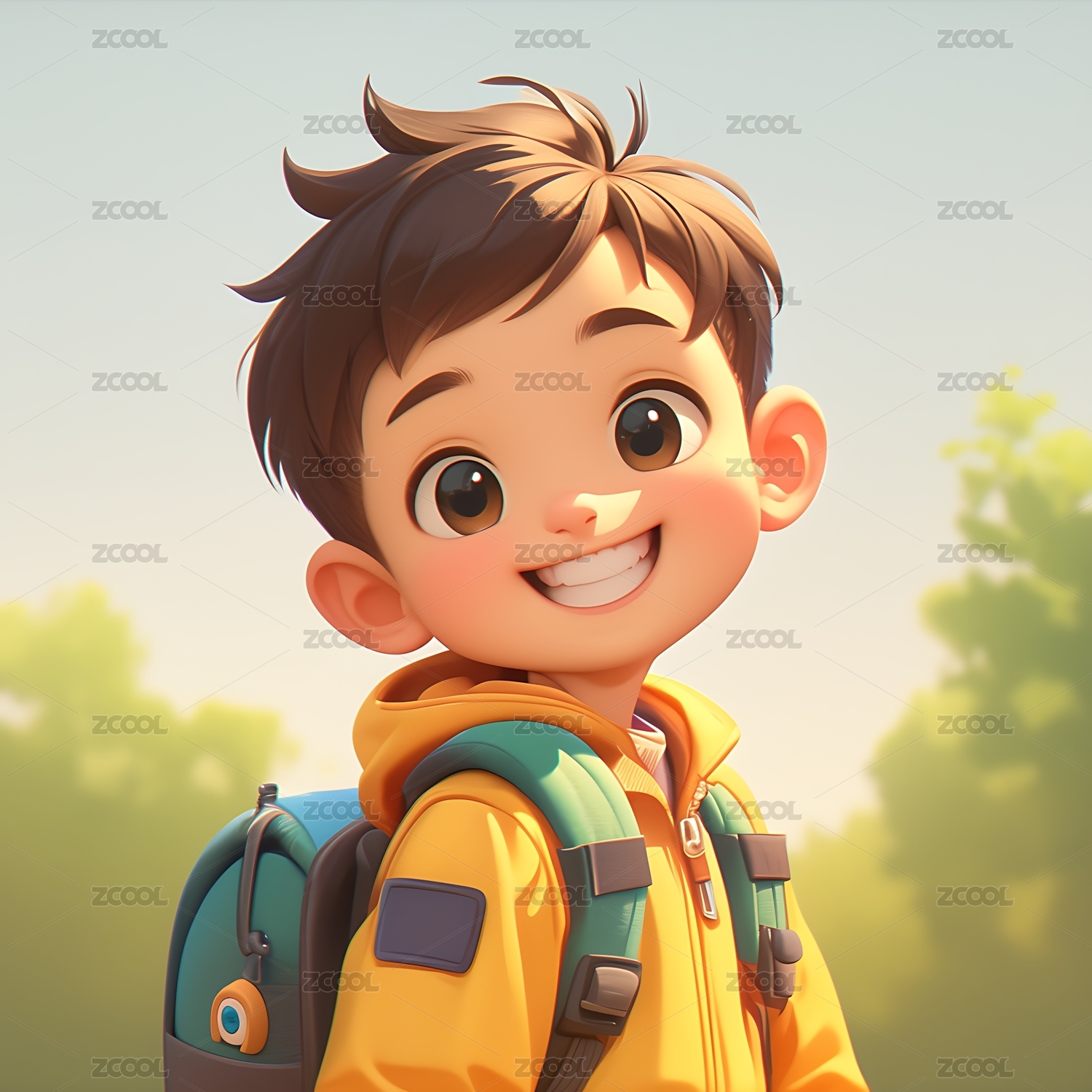 穿着蓝色夹克卡通男孩双手插在口袋里站着图