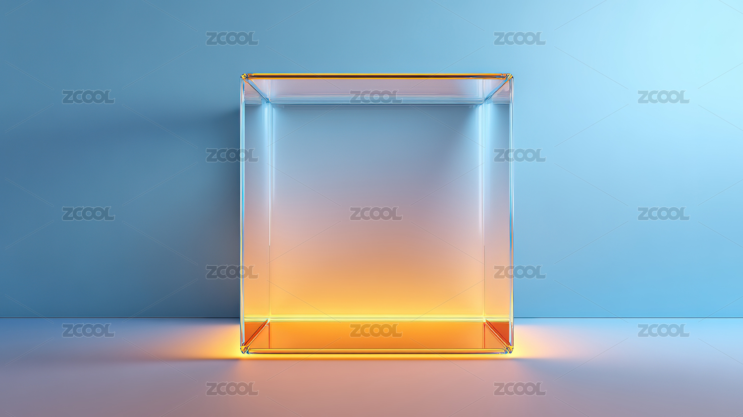 蓝色光影下的极简空间 纯净蓝色的几何舞台