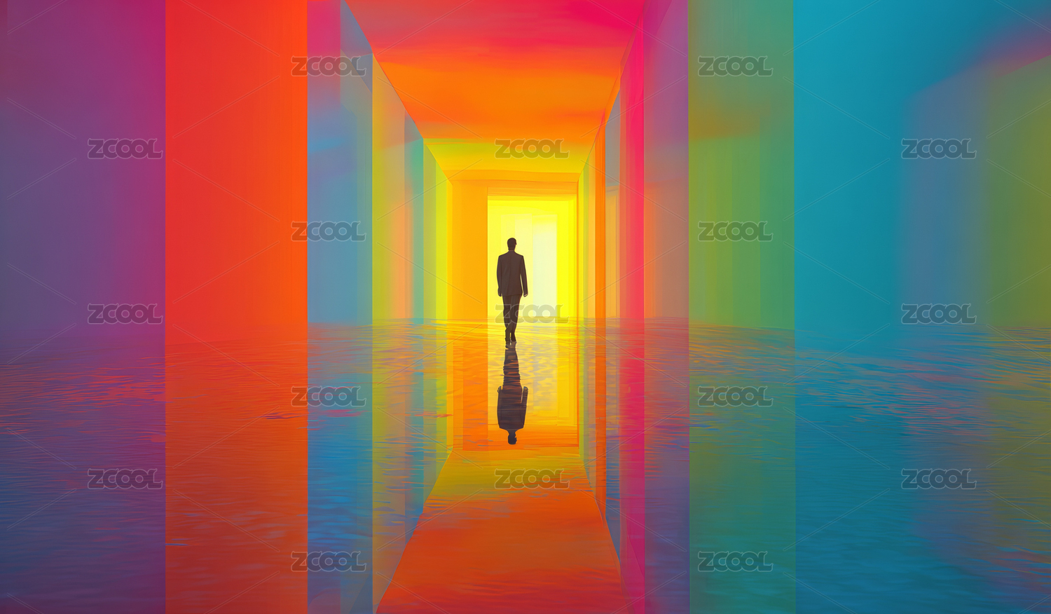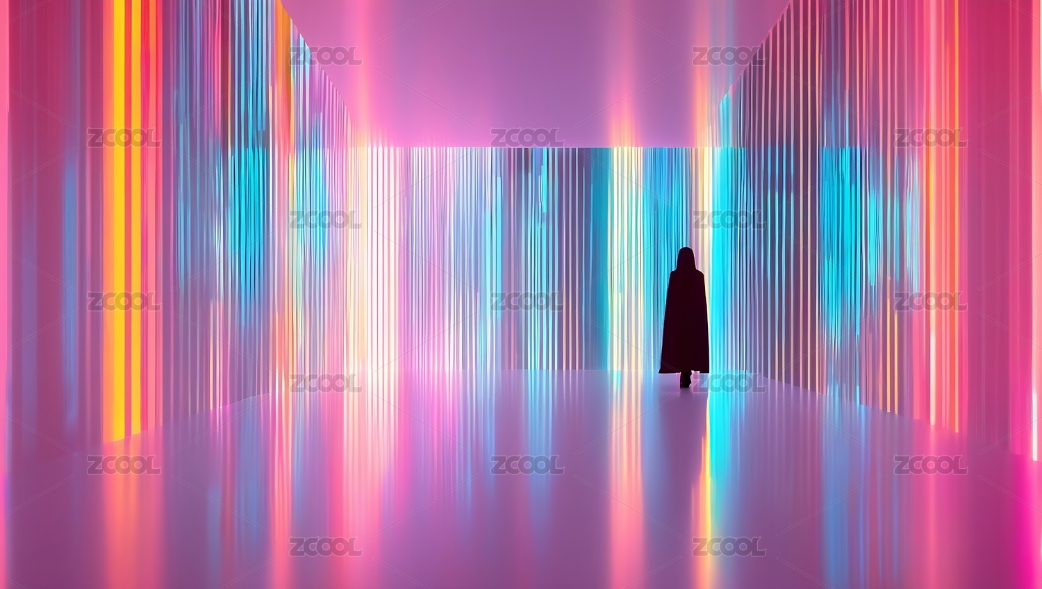 七彩,三维,场景,空间,艺术,室内,地面,人物,剪影,数字