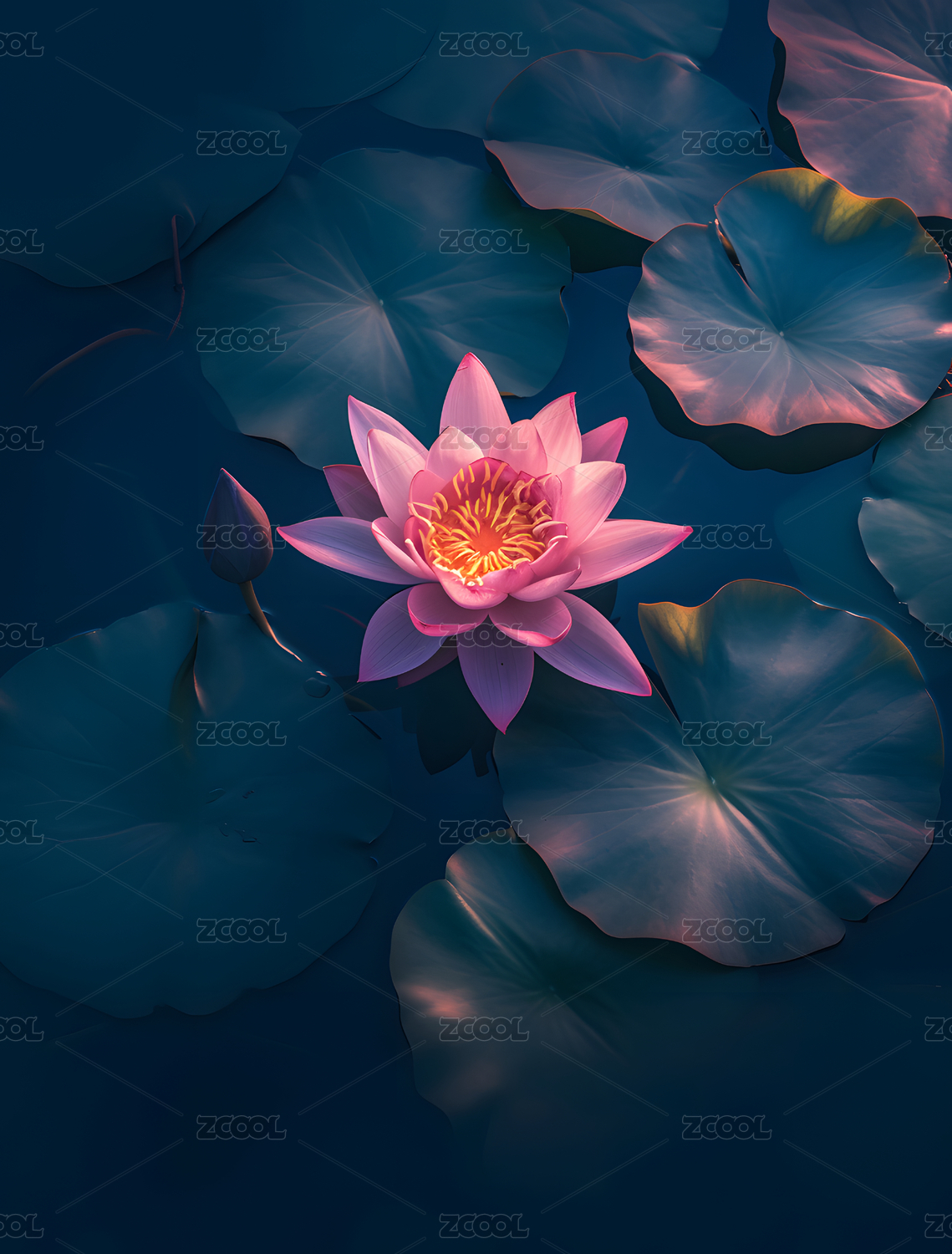 橘绿色花朵荷花睡莲壁纸插画手机端海报背景